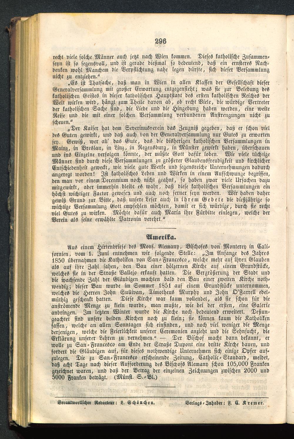„Der Kaiser hat dem SeverinuSverein daS Zeugniß gegeben, daß er schon vieldes Guten gewirkt, und daß auch von der Generalversammlung nur Gutes zu erwartensey. Gewiß, wer all' das Gute, das die bisherigen katholischen Versammlungen inMainz, in Breslau, in Linz, in Regensburg, in Münster gewirkt haben, überschauenund inS Einzelne verfolgen könnte, der müßte Gott dafür loben. Wie viele tüchiigeMänner sind durch diese Versammlungen zu größerer Glaubensfreudigkeit und kirchlicherEntschiedenheit geweckt, wie viele gute Werke und segensreiche Unternehmungen dadurchangeregt worden! Ist katholisches Leben und Wirken in einem Aufschwünge begriffen,den man vor einem Decennium noch nicht geahnt, so haben zwar viele Ursachen dazumitgewirkt, aber immerhin bleibt eS wahr, daß diese katholischen Versammlungen einhöchst wichtiger Factor gewesen und auch noch serner seyn werden. Wir haben dahergewiß Grund zur Bitte, daß unsere Leser auch in ihrem Gebete die dießjährige sowichtige Versammlung Gott empfehlen möchten, damit er sich würdige, durch sie rechtviel Gutes zu wirken. Möchte dafür auch Maria ihre Fürbitte einlegen, welche derVerein als seine erwählte Patronin verehrt."
