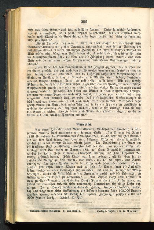 »ES ist Thatsache, daß man in Wien in allen Klassen der Gesellschaft dieserGeneralversammlung mit großer Erwartung entgegensieht; was sie zur Belebung deskatholischen Geistes in dieser katholischen Hauptstadt des ersten katholischen Reiches derWelt wirken wird, hängt zum Theile davon ab, ob recht Viele, die würdige Vertreterder katholischen Sache sind, die Liebe und die Hingebung haben werden, eine weiteReise und die mit einer solchen Versammlung verbundenen Anstrengungen nicht zuscheuen."