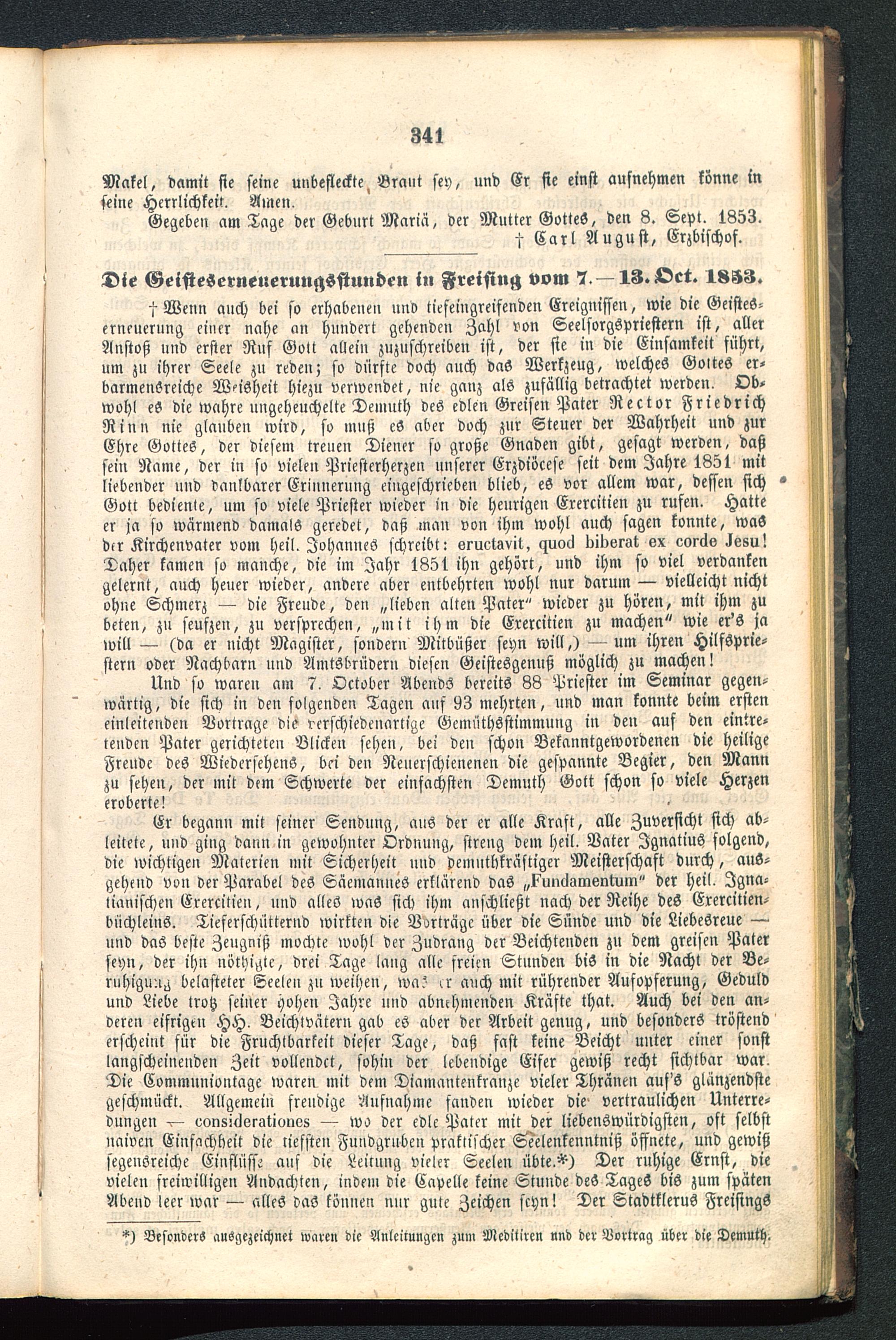 Gegeben am Tage der Geburt Maria, der Mutter GotteS, den 8. Sept. 1853.
