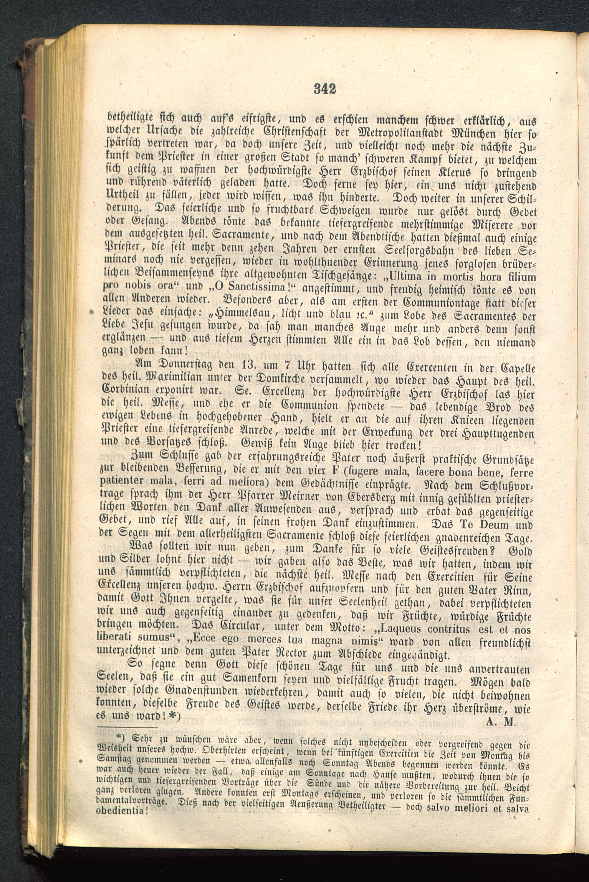 Waö sollten wir nun geben, zum Danke für so viele Geistesfrcuden? Goldund Silber lohnt hier nicht — wir gaben also das Beste, was wir hatten, indem wiruns sämmtlich verpflichteten, die nächste heil. Messe nach den Erercitien für SeineErcellenz unseren hochw. Herrn Erzbischof aufzuopfern und für den guten Vater Rinn,damit Gott Ihnen vergelte, was sie für unser Seelenheil gethan, dabei verpflichtetenwir uns auch gegenseitig einander zu gedenken, daß wir Früchte, würdige Früchtebringen möchten. Das Circular, nutendem Motto: „^seiueus eontritus est et nosliberati sumus", „Leee eZo meres5 tus magns vimiz" ward von allen frenndlichstunterzeichnet und dem guten Pater Rector zum Abschiede eingehändigt.