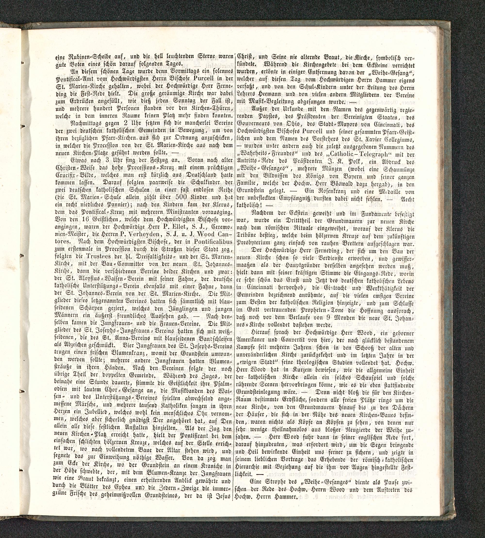 Christ , und Seine nie alternde Braut, die Kirche, symbolisch ver-kündete. Während die Kirchcngebctc bei dc-m Ecksteine verrichtetwurden, ertönte in einiger Entfernung davon der „Weihe-Gesang",welcher auf diesen Tag vom Hochwürdigen Herrn Hammer eigensversaßt, und von den Schul-Kindcrn unter der Leitung des HerrnLehrers Heemann und von vielen andern Mitgliedern der Vereinemit Musik-Begleitung abgesungen wurde. —