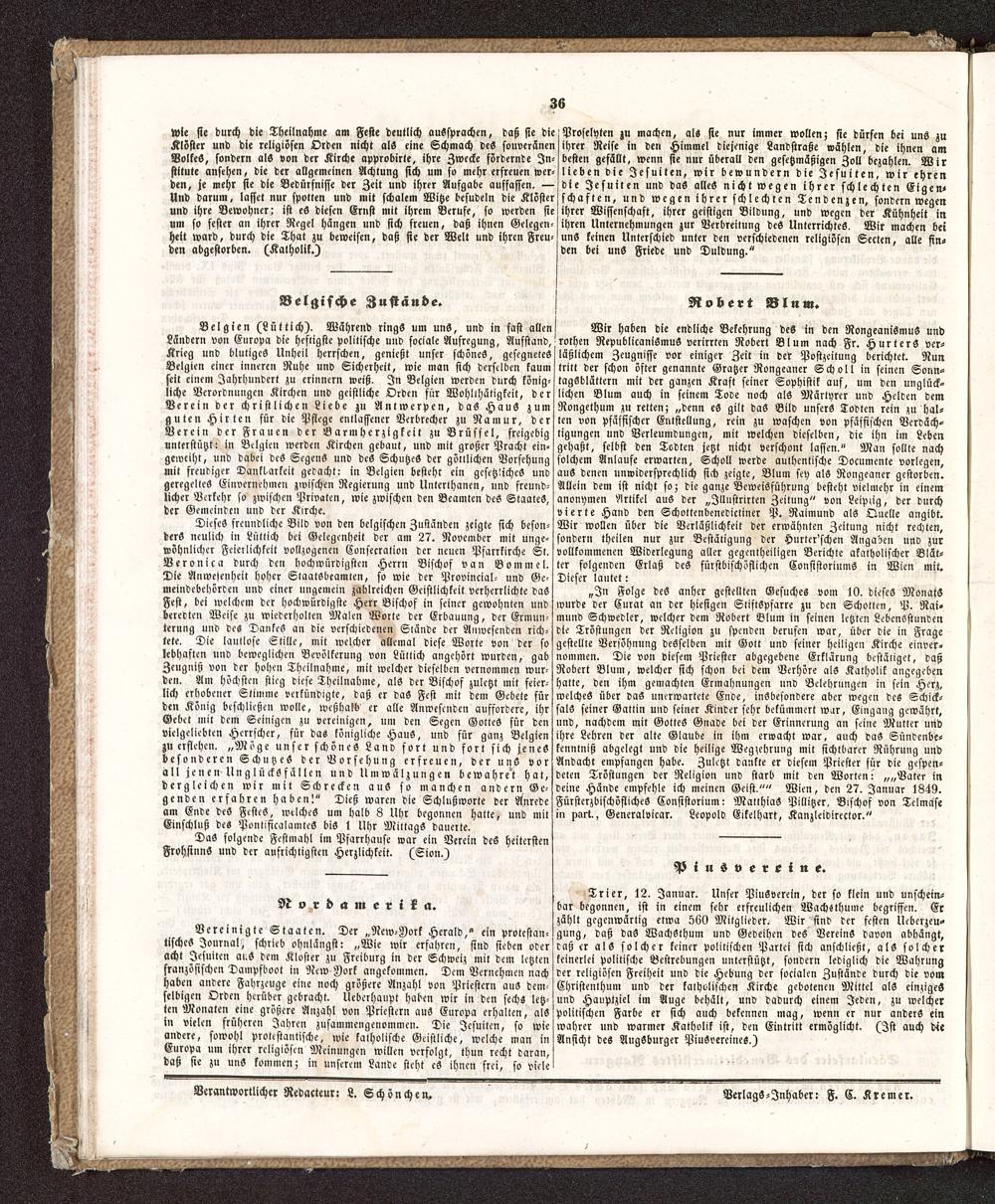 Verlags-Inhaber: F. C. Kremer.
