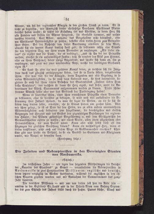 Im verflossenen Jahre — wir legen den folgenden Mittheilungen die Berichteder „Annalen des Glaubens" zu Grund — veranstalteten die Redemptoristen inNordamerika in zwei Hauptpartieen Missionen: englische und deutsche,deren letztere vorzüglich im Westen stattfanden, während die englischen in den öst-lichen Staaten gegeben wurden und mit Ausnahme der Sommermonate das ganzeJahr dauerten.