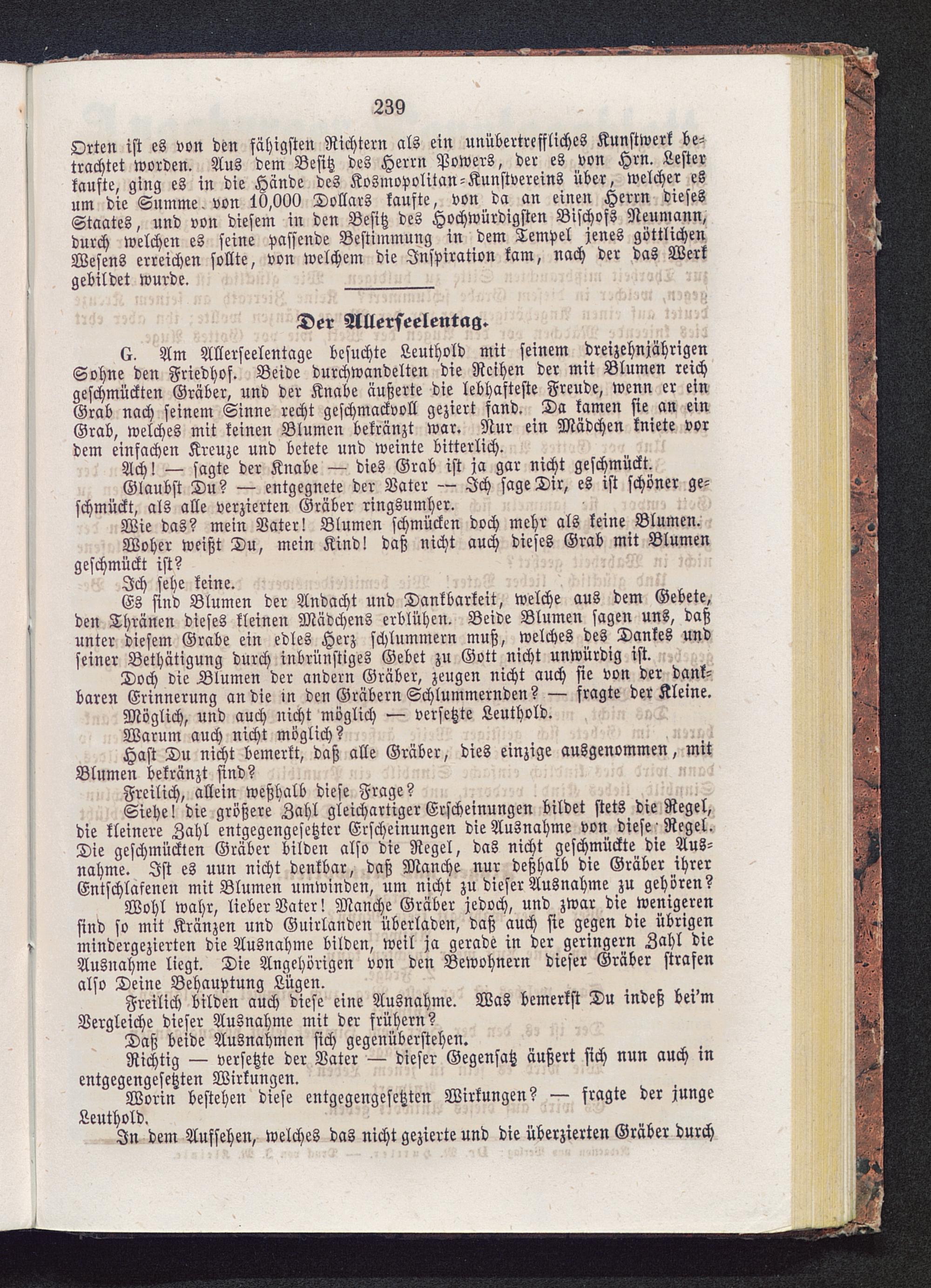 Orten ist es von den fähigsten Richtern als ein unübertreffliches Kunstwerk be-trachtet worden. Aus dem Besitz des Herrn Powers, der es von Hrn. Lesterkaufte, ging es in die Hände des Kosmopolitan-Kunstvereins über, welcher esum die Summe, von 10,000 Dollars kaufte, von da an einen Herrn diesesStaates, und von diesem in den Besitz des Hochwürdigsten Bischofs Neumann,durch welchen es seine passende Bestimmung in dem Tempel jenes göttlichenWesens erreichen sollte, von welchem die Inspiration kam, nach der das Werkgebildet wurde. _