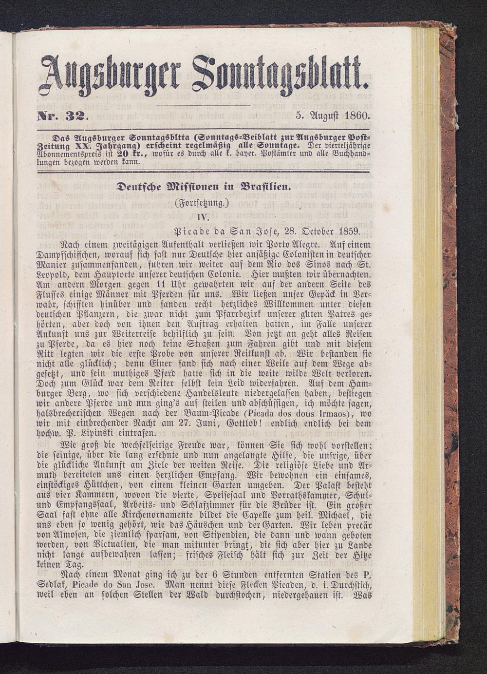 Das Augsburger Sonntagsbltta (Sonntags-Beiblatt zur AugSburger Post-Zeitung XX. Jahrgang) erscheint regelmäßig alle Sonntage. Der vierteljährigeAbonnementspreis ist 20 rr., wofür es durch alle k. bayer. Postämter und alle Buchhand-lungen bezogen werden kann.