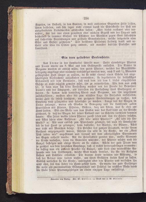 Kranken, im Unstath, in den Banden, in weit entfernten Gegenden Hilfe leisten,ihnen beistehen, nnd sich sogar nicht einmal durch die Schrecknisse der Pest vorausgebreiteten Liebeswerken abschrecken lassen: „Wer dieses verkennt oder ver-nichtet, der hat nur einen gemeinen oder niedern Begriff von der Tugend undbeschränkt in dummer Einfalt die Pflichten der Menschen gegen Gott schlechthinauf äußerliche Verrichtungen und geistlose Gewohnheiten, welche insgemein ohneEifer und Gefühl geschehen." Der berühmte Philosoph Leibnitz denkt und ur-theilt also über die Orden ganz anders, als mancher badische Professor undLandstand.