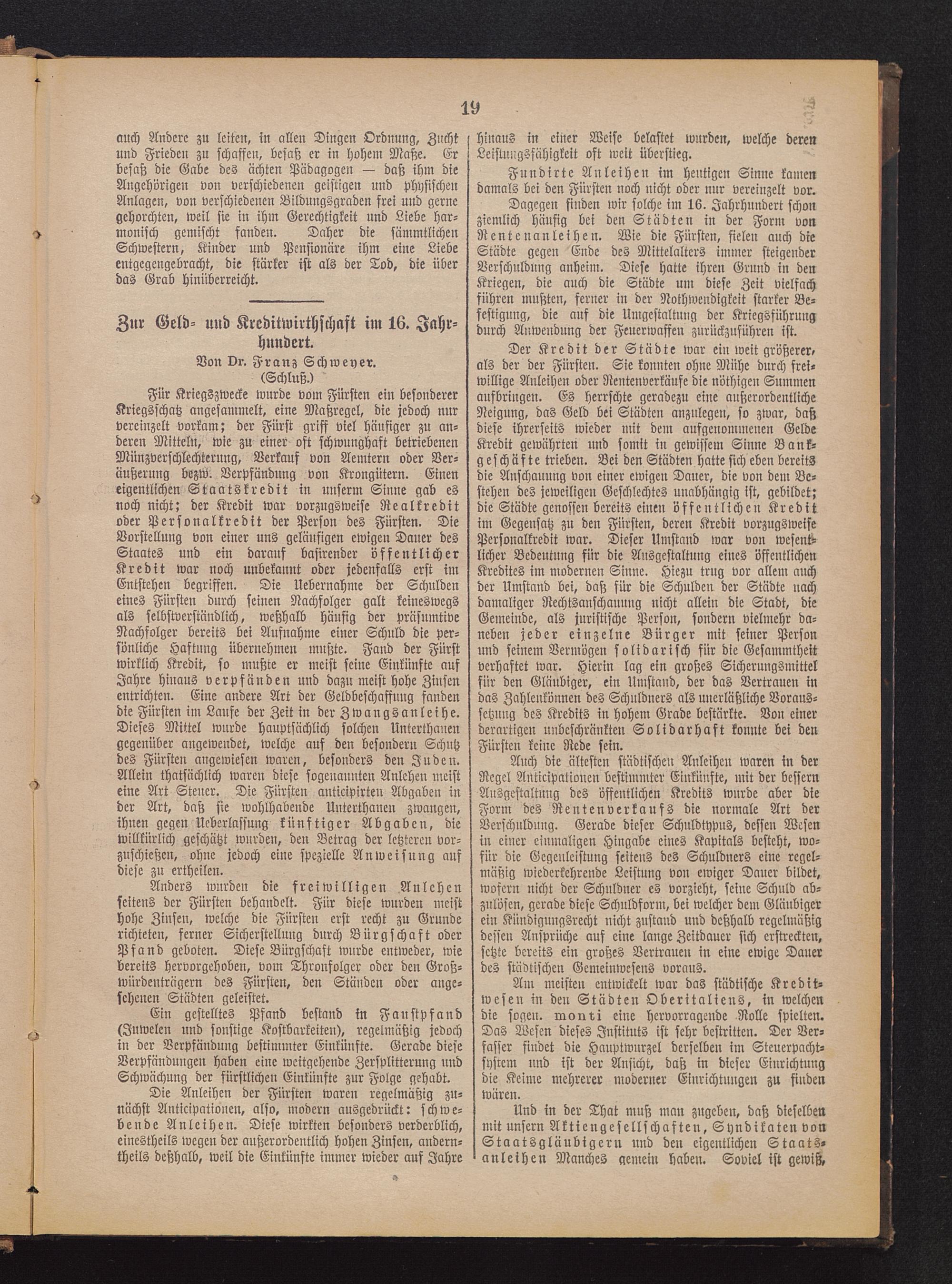 Zur Geld- und Kreditwirthschaft im 16 . Jahr-hundert.