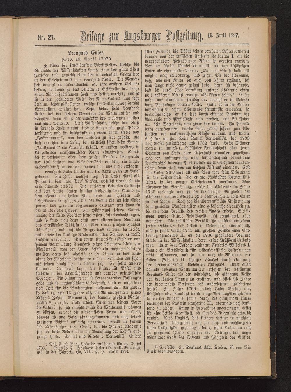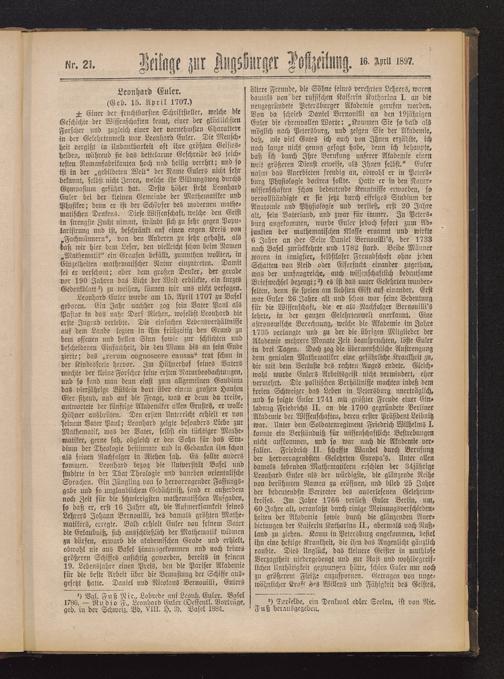 ') Vgl. Fuß Nie., Lobrede auf Leouh. Enler. Basel 1786. — Radio F., Lconbard Eulcr (Oesfeutl. Vortrüge,geh. in der Schweiz. Bd. VIII. H. 3). Basel 1831.