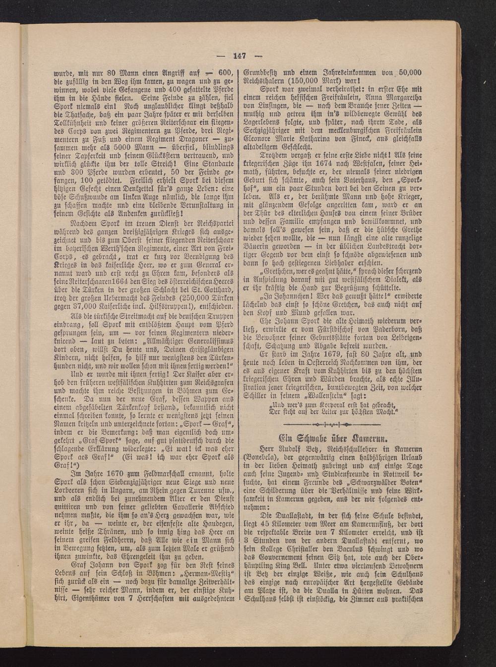 Er starb im Jahre 1679, fast 80 Jahre alt, undheute noch leben in Oesterreich Nachkommen von ihm, deres aus eigener Kraft vom Kuhhirten bis zu den höchstenkriegerischen Ehren und Würden brachte, als echte Illu-stration jener kriegerischen, buntbewegten Zeit, von welcherSchiller in seinem „Wollenstem" sagt: