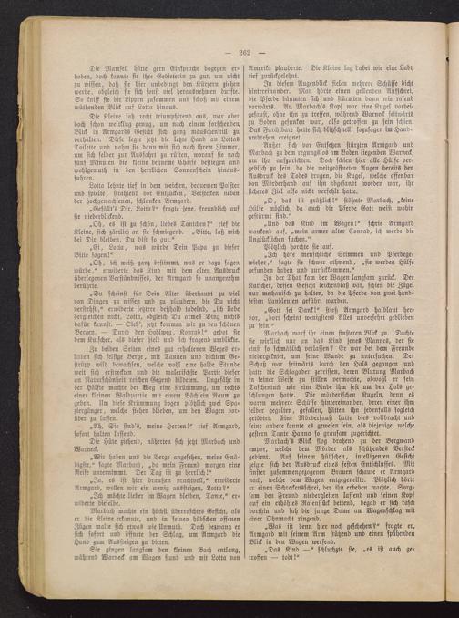 „Du scheinst für Dein Alter überhaupt zu vielvon Dingen zu wissen und zu plaudern, die Du nichtverstehst," erwiderte letztere deßhalb tadelnd, „ich liebedergleichen nicht, Lotta, obgleich Du armes Ding nichtsdafür kannst. — Sieh', jetzt kommen wir zu den schönenBergen. — Durch den Hohlweg, Konrad!" gebot siedem Kutscher, als dieser hielt und sich fragend umblickte.