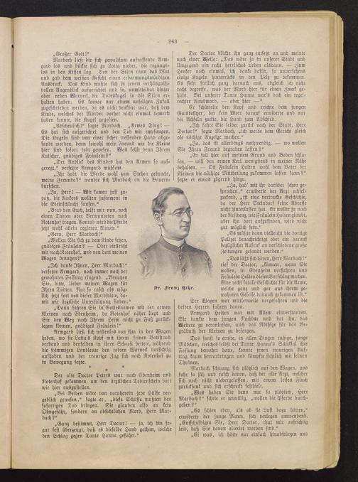 Der Doctor blickte ihn ganz entsetzt an und meintenach einer Weile: „Das wäre ja in unserer Stadt undUmgegend ein recht herrliches Leben alsdann. — ZumHenker noch einmal, ich danke dafür, so unversehenseinige Kugeln hinterrücks in den Pelz zu bekommen.Es sieht freilich ganz darnach aus, obgleich ich nichtrecht begreife, was der Mord hier für einen Zweck ge-habt. Bei unserer Tante Hanna war's doch ein regel-rechter Raubmord, — aber hier —"
