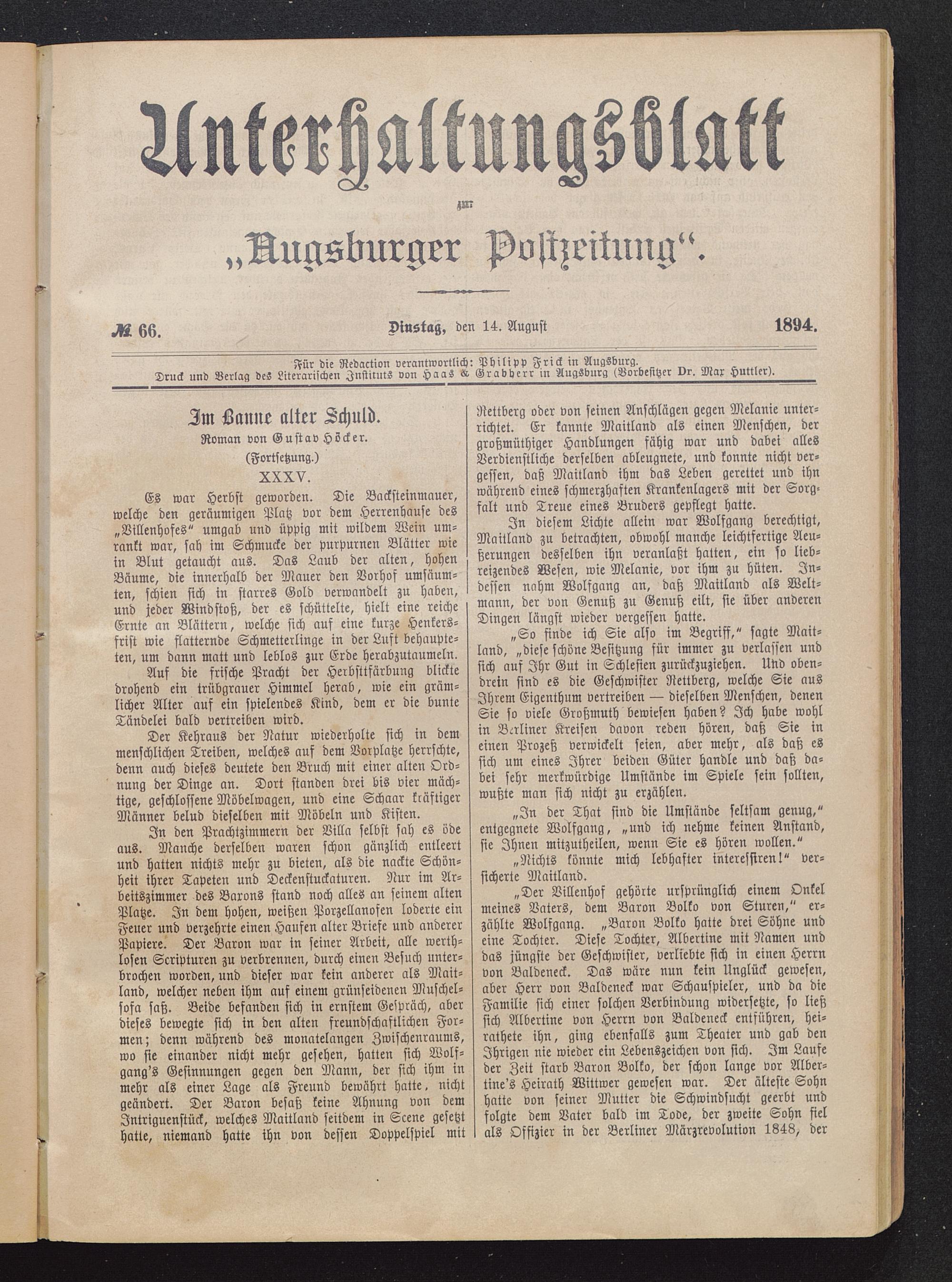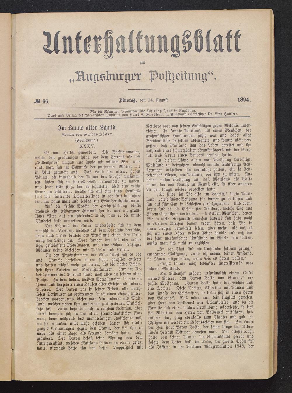 Für die Redaction verantwortlich: Philipp Frick in Augsburg .