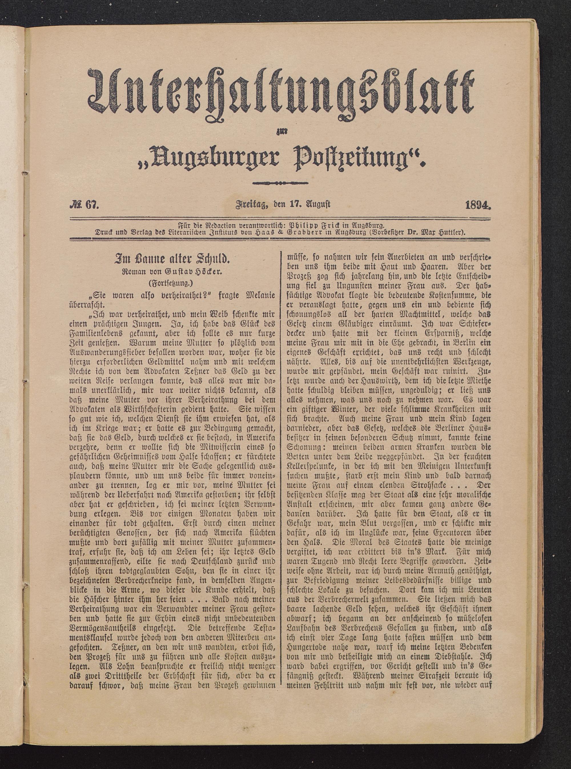 Für die Redaction verantwortlich: Philipp Frick in Augsburg .