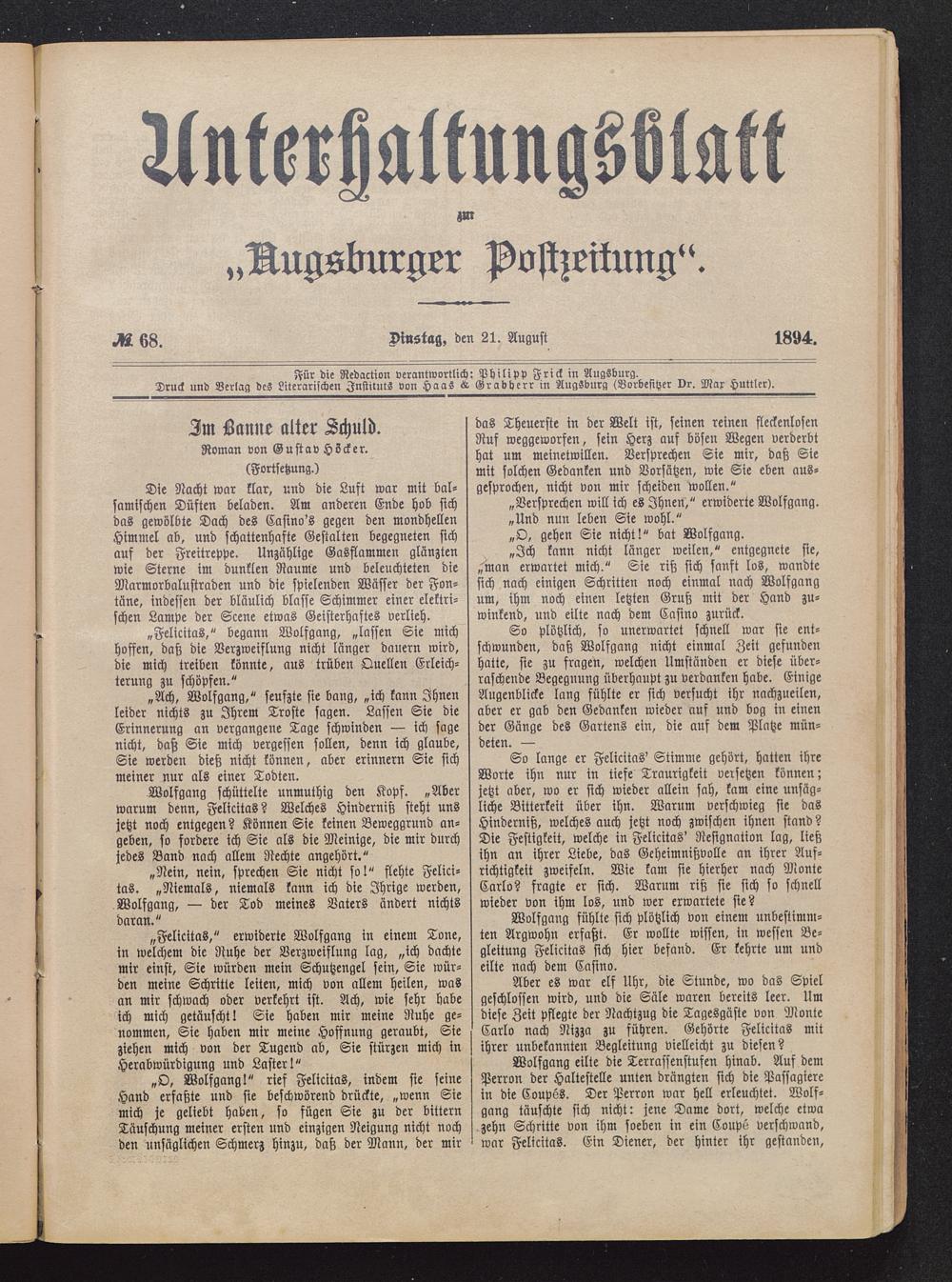 Für die Redaction verantwortlich: Philipp Frick in Augsburg.