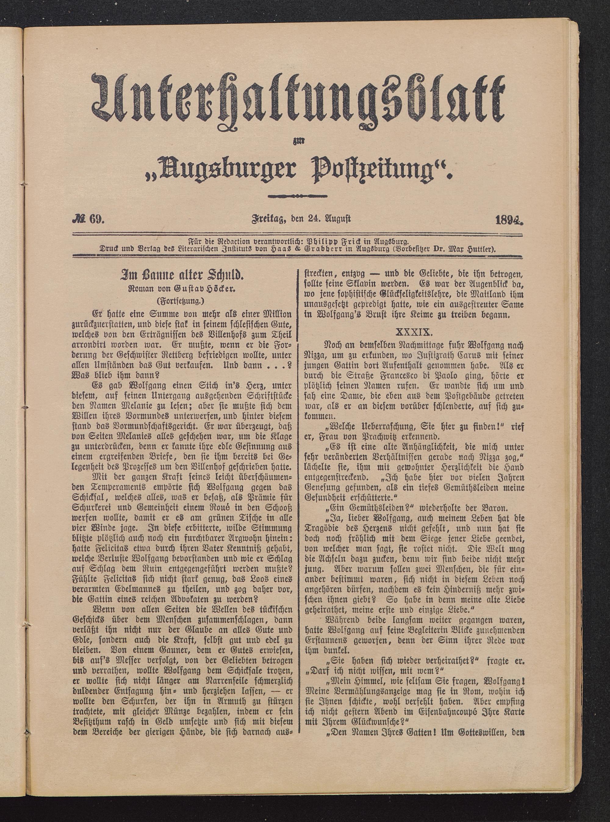 Für die Redaction verantwortlich: Philipp Frick in Augsburg .