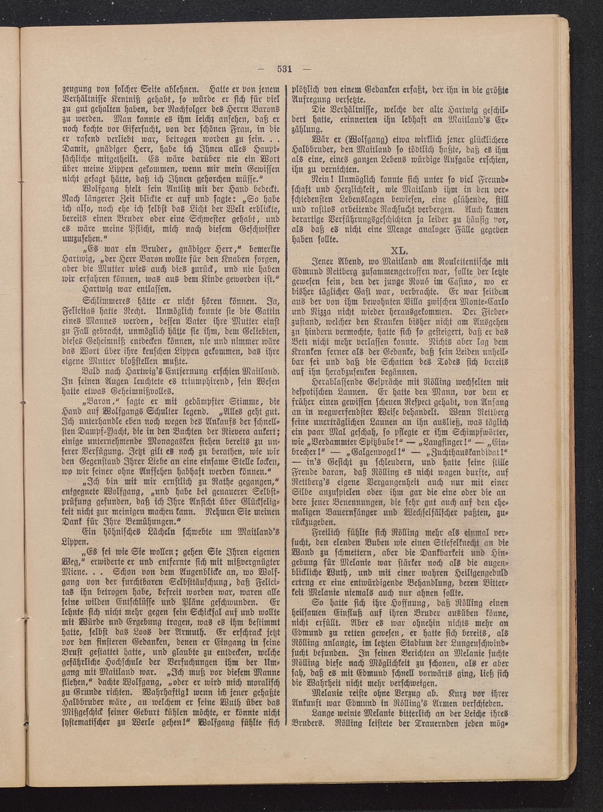 Wär er (Wolfgang) etwa wirklich jener glücklichereHalbbruder, den Maitland so tödtlich haßte, daß es ihmals eine, eines ganzen Lebens würdige Aufgabe erschien,ihn zu vernichten.