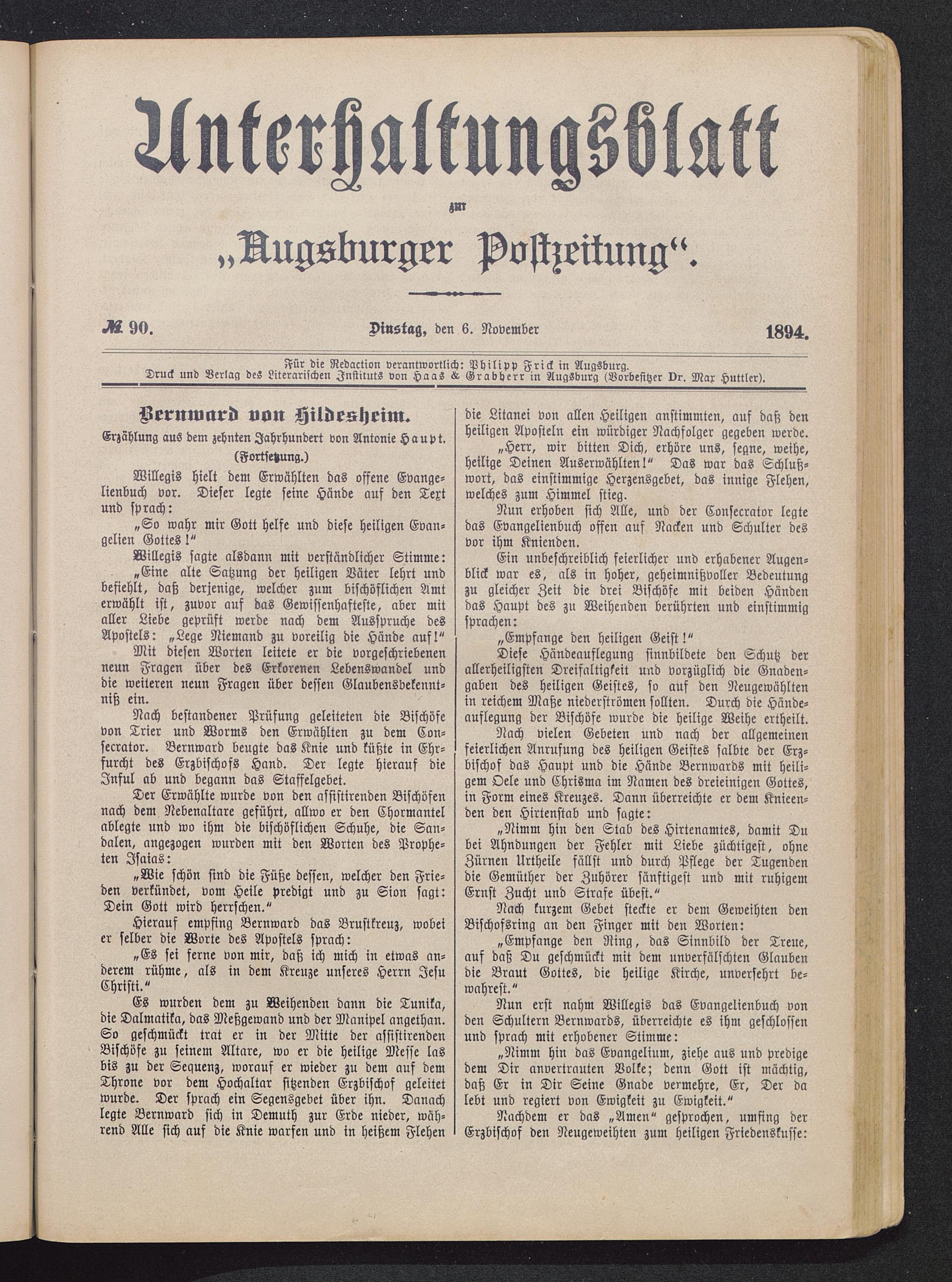 Für die Redaction verantwortlich: Philipp Frick in Augsburg .