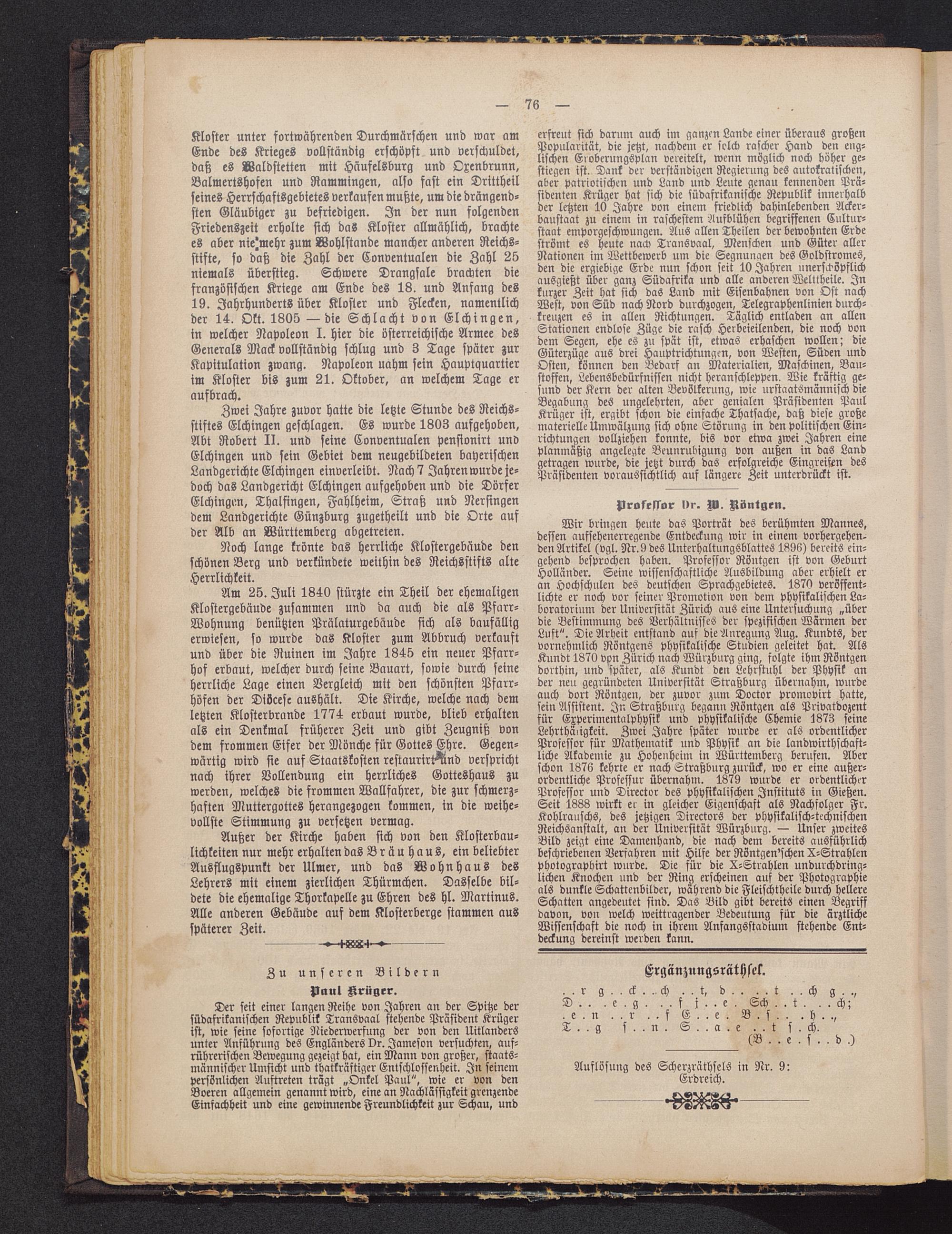 Kloster unter fortwährenden Durchmärschen und war amEnde des Krieges vollständig erschöpft und verschuldet,daß es Waldstetten mit Häufelsburg und Oxenbrunn,Balmertshofen und Rammingen , also fast ein Drittheilseines Herrschaftsgebietes verkaufen mußte, um die drängend-sten Gläubiger zu befriedigen. In der nun folgendenFriedenszeit erholte sich das Kloster allmählich, brachtees aber nie^mehr zum Wohlstände mancher anderen Reichs-stifte, so daß die Zahl der Conventualen die Zahl 25niemals überstieg. Schwere Drangsale brachten diefranzösischen Kriege am Ende des 18. und Anfang des19. Jahrhunderts über Kloster und Flecken, namentlichder 14. Okt. 1805 —die Schlacht von Elchingen ,in welcher Napoleon I. hier die österreichische Armee desGenerals Mack vollständig schlug und 3 Tage später zurKapitulation zwang. Napoleon uahm sein Hauptquartierim Kloster bis zum 21. Oktober, an welchem Tage eraufbrach.