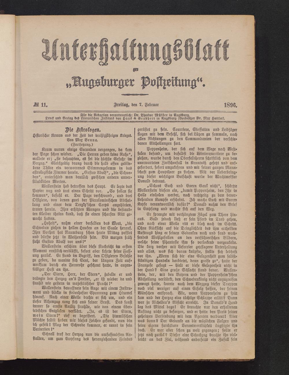 Kür die Redaction verantwortlich: Dr. Theodor Müller in Augsburg .