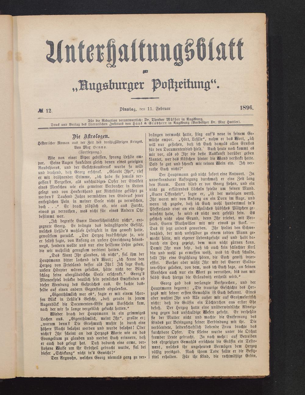 Für die Redaction verantwortlich: Dr. Theodor Müller in Augsburg .