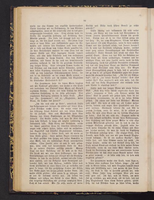 Der Hauptmann hatte die letzten Worte langsamund mit Nachdruck gesprochen; nun machte er eine Pauseund beobachtete den Eindruck seiner Worte auf Georg'serglühtem Gesichte. Dieser war beim Schluß der über-raschenden Enthüllung in die Höhe gesprungen. Eineungeheuere Aufregung arbeitete in seiner Brust. „Wassagt Ihr, Hauptmann", rief er, „Magdalene, meineBraut, die Tochter des Herrn?"