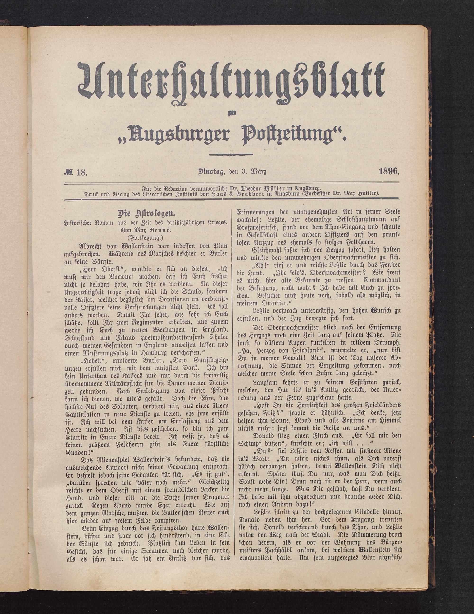 Für die Redaction verantwortlich: Dr. Theodor Müller in Augsburg .