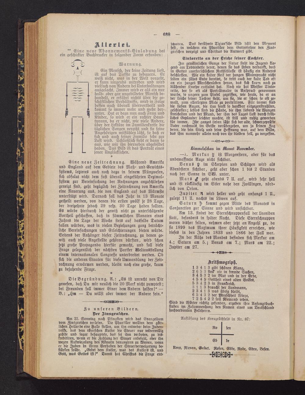 Auflösung des Kreuzräthsels in Nr. 87: