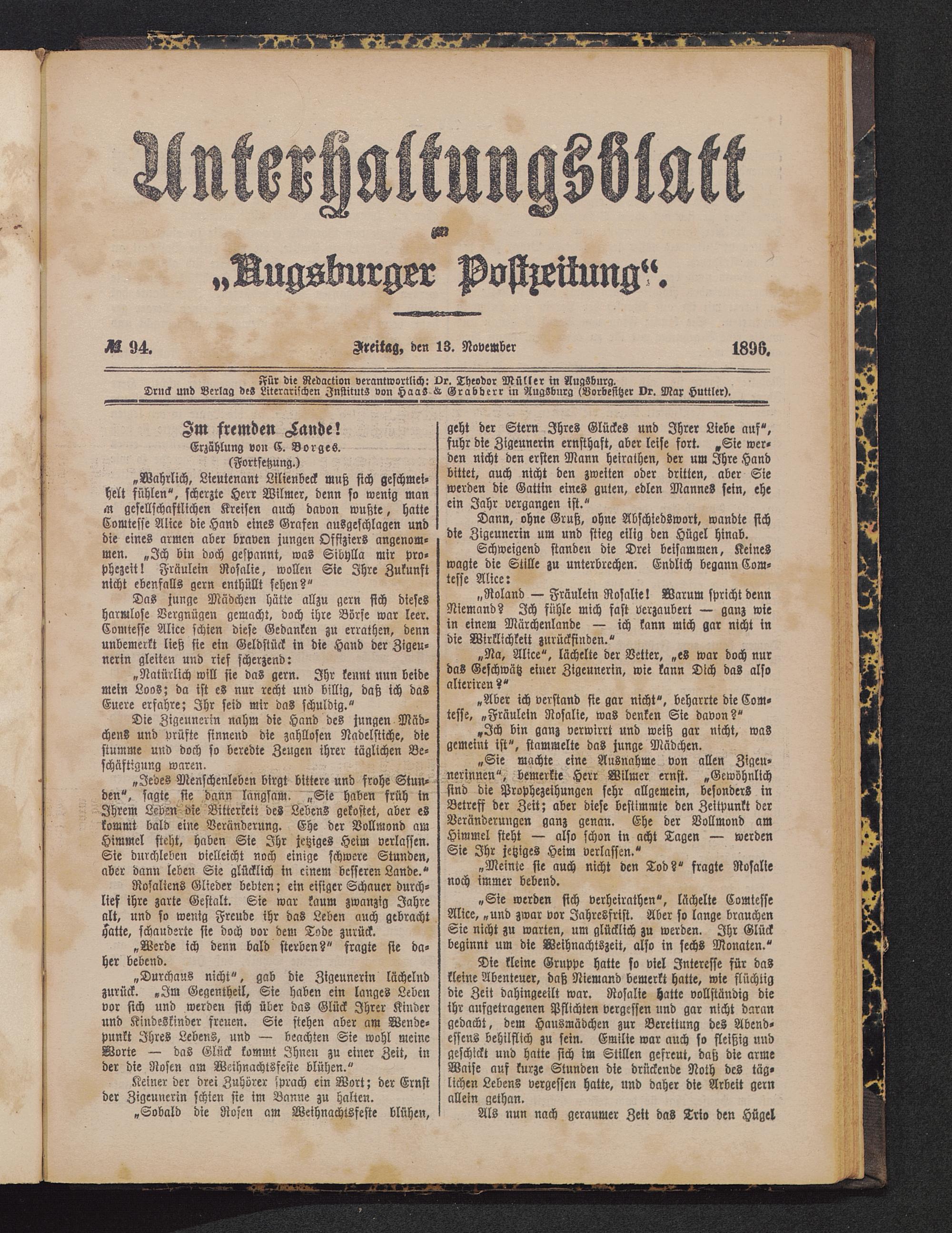 Für die Redaction verantwortlich: vr. Theodor Müller in Augsburg .