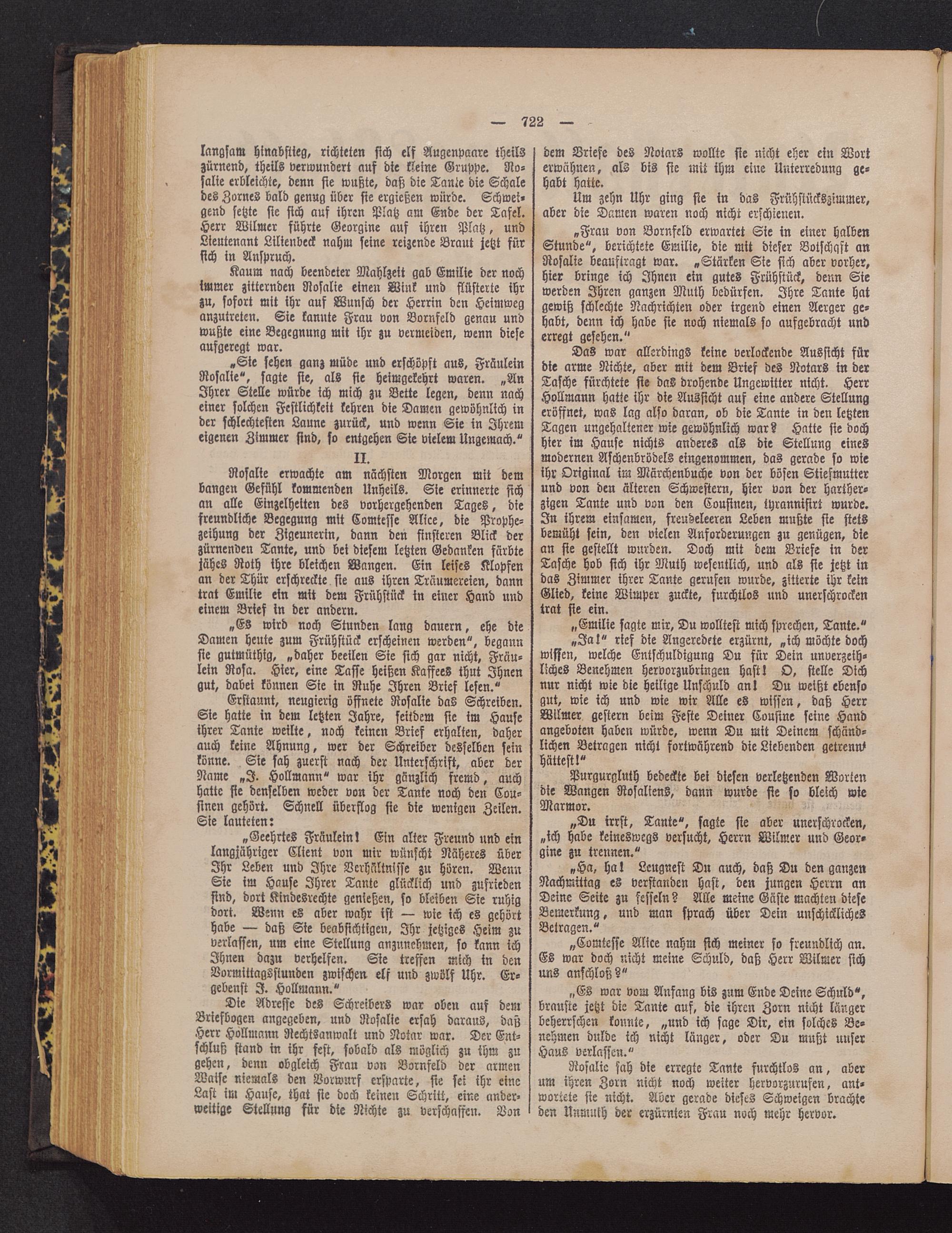Nosalie sah die erregte Tante furchtlos an, aberum ihren Zorn nicht noch weiter hervorzurufen, ant-wortete sie nicht. Aber gerade dieses Schweigen brachteden Nnmuth der erzürnten Frau noch mehr hervor.