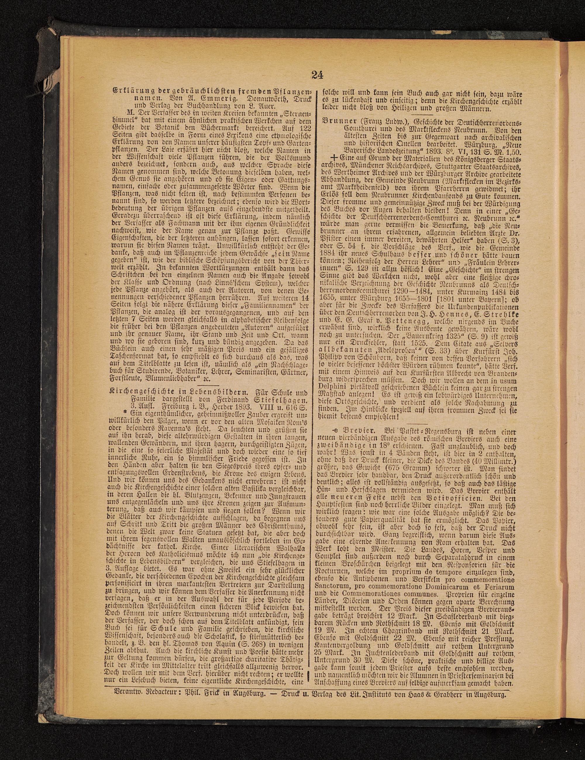 Kirchengeschichte in Lebensbildern. Für Schule undFamilie dargestellt von Ferdinand Stiefel Hagen.3. Aufl. Freiburg i. B., Herder 1893. VIII u. 6l6S.