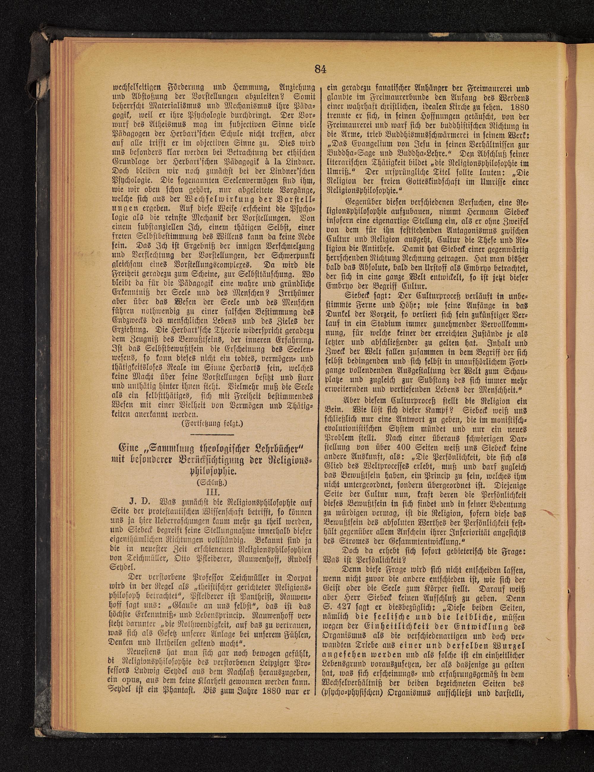 Neuestens hat man sich gar noch bewogen gefühlt,bi Neligionsphilosophie des verstorbenen Leipziger Pro-fessors Ludwig Seydel aus dem Nachlaß herauszugeben,ein opus, aus dem keine Klarheit gewonnen werden kann.Seydel ist ein Phantast. Bis zum Jahre 1680 war er