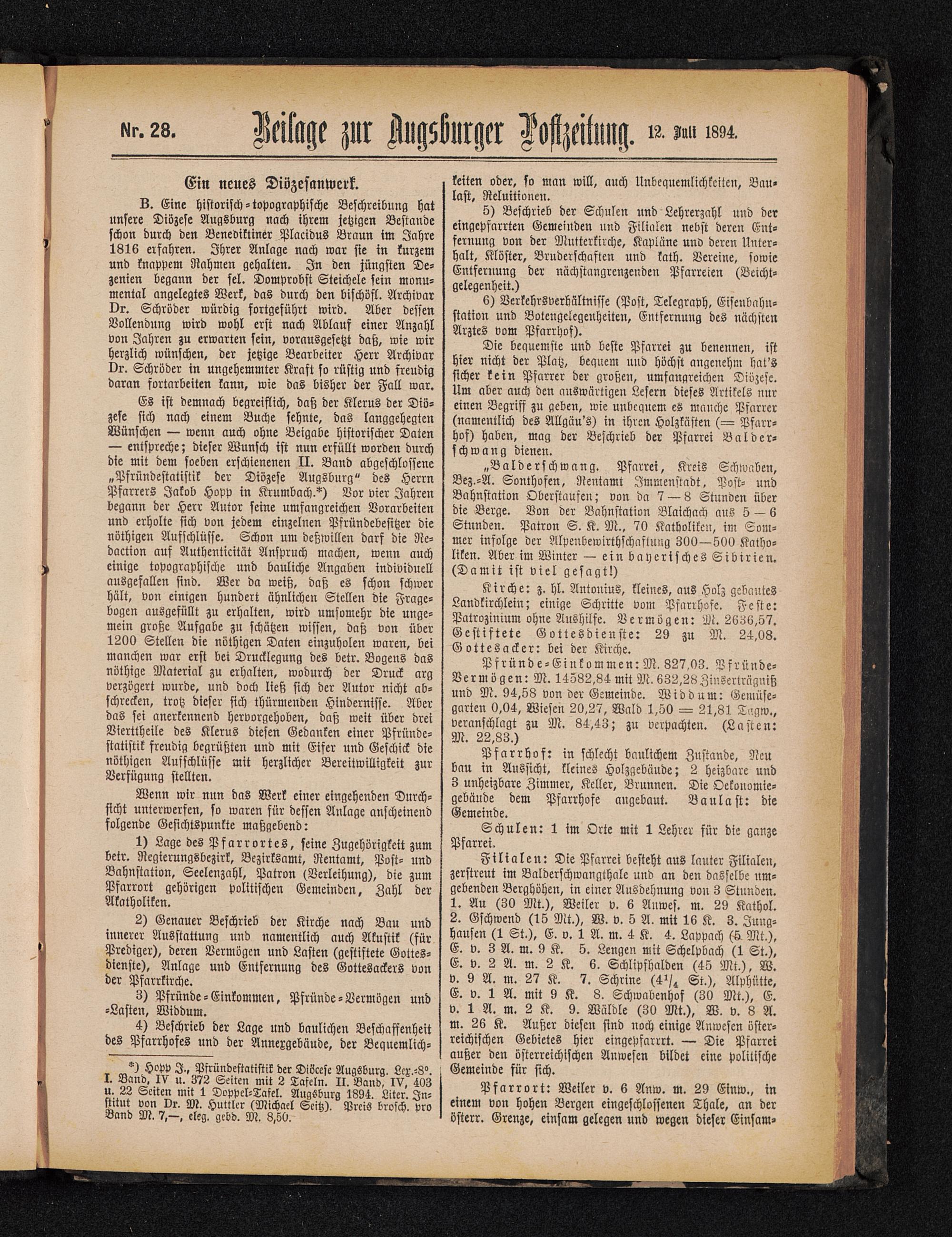 *) Hopp I., Pfründestatistik der Diöcese Augsburg . Lex.-8°.I. Band. IV u. 372 Seiten mit 2 Tafeln. II. Band, IV. 403u. 22 Seiten mit 1 Doppel-Tafel. Augsburg 1894. Liter. In-stitut von Dr. M. Huttlcr (Michael Seitz). Preis brosch. proBand M. 7,-, eleg. gebd. M. 8,50.