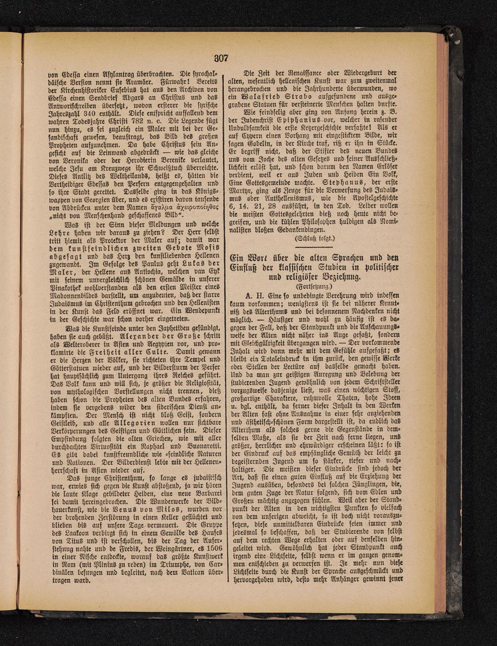 L. H. Eine so unbedingte Verehrung wird indessenkaum vorkommen; wenigstens ist sie bei näherer Kennt-niß des Alterthums und bei besonnenem Nachdenken nichtmöglich. — Häufiger und wohl zu häufig ist es da-gegen der Fall, daß der Standpunkt und die Anschauungs-weise der Alten nicht näher ins Auge gefaßt, sondernmit Gleichgültigkeit Übergängen wird. — Der vorkommendeInhalt wird dann mehr mit dem Gefühle aufgefaßt; esbleibt ein Tvtaleindruck in ihm zurück, den gewisse Werkeoder Stellen der Lectüre auf dasselbe gemacht haben.Und da man zur geistigen Anregung und Belebung derstudierenden Jugend gewöhnlich von jedem Schriftstellervorzugsweise dasjenige liest, was einen wichtigen Stoff,großartige Charaktere, ruhmvolle Thaten, hohe Ideenu. dgl. enthält, da ferner dieser Inhalt in den Werkender Alten fast ohne Ausnahme in einer sehr anziehendenund ästhetisch-schönen Form dargestellt ist, da endlich dasAlterthum als solches gerne die Gegenstände in dem-selben Maße, als sie der Zeit nach ferne liegen, nnSgrößer, herrlicher und ehrwürdiger erscheinen läßt: so istder Eindruck auf das empfängliche Gemüth der leicht zubegeisternden Jugend um so stärker, tiefer und nach-haltiger. Die meisten dieser Eindrücke sind jedoch derArt, daß sie einen guten Einfluß auf die Erziehung derJugend ausüben, besonders bei solchen Jünglingen, die,dem guten Zuge der Natur folgend, sich vom Edlen undGroßen mächtig angezogen fühlen. Weil aber der Stand-punkt der Alten in den wichtigsten Punkten so vielfachvon dem unserigen abweicht, so ist doch nicht vorauszu-setzen, diese unmittelbaren Eindrücke seien immer undjedesmal so beschaffen, daß der Studierende von selbstauf dem rechten Wege erhalten oder auf denselben hin-geleitet wird. Gewöhnlich hat jeder Standpunkt auchirgend eine Lichtseite, selbst wenn er im ganzen genom-men entschieden zu verwerfen ist. Je mehr nun dieseLichtseite durch die Kunst der Sprache ausgeschmückt undhervorgehoben wird, desto mehr Anhänger gewinnt jener