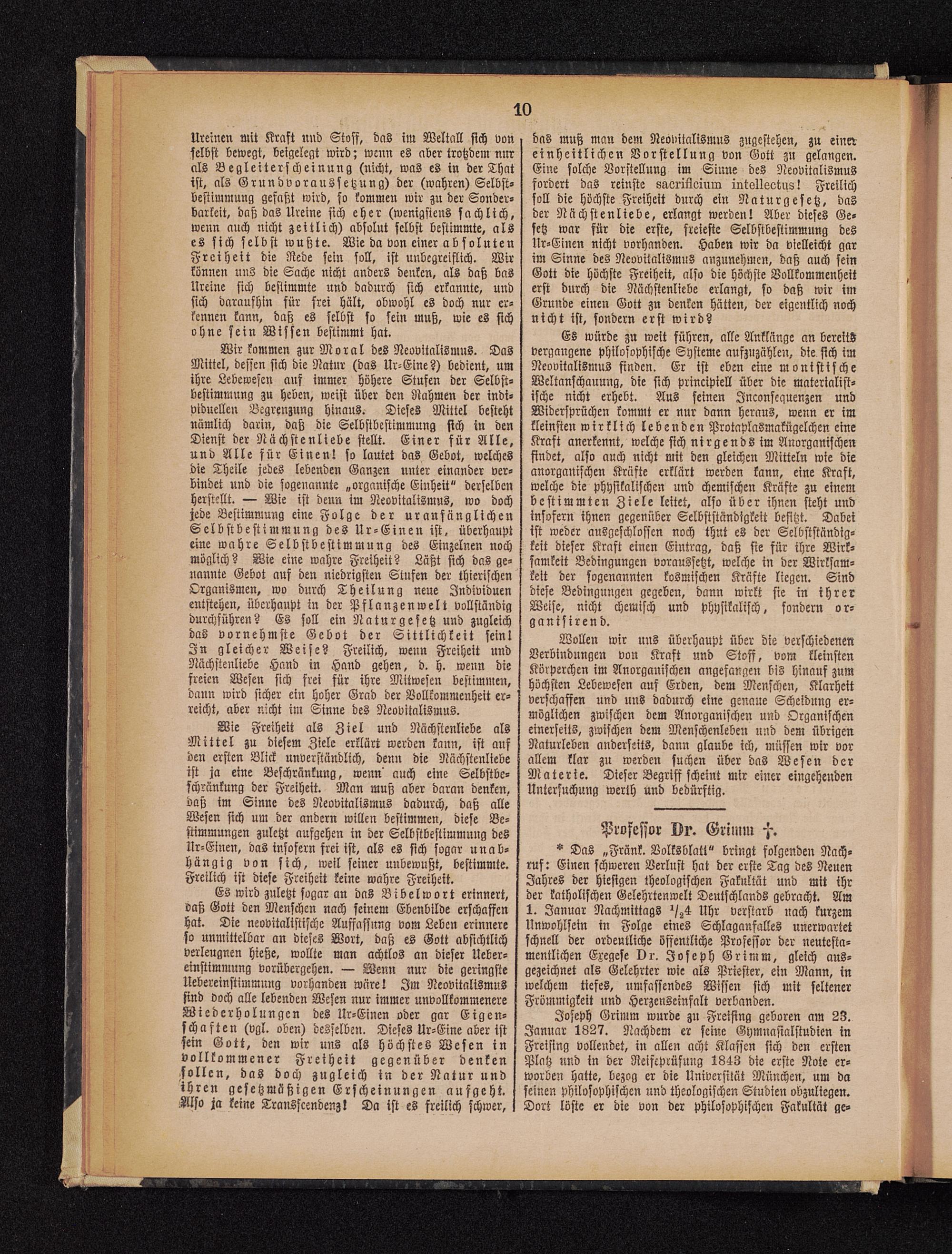 Joseph Grimm wurde zu Freising geboren am 23.Januar 1827. Nachdem er seine Gymnasialstudien inFreising vollendet, in allen acht Klassen sich den erstenPlatz und in der Reifeprüfung 1843 die erste Note er-worben hatte, bezog er die Universität München , um daseinen philosophischen und theologischen Studien obzuliegen.Dort löste er die von der philosophischen Fakultät ge-