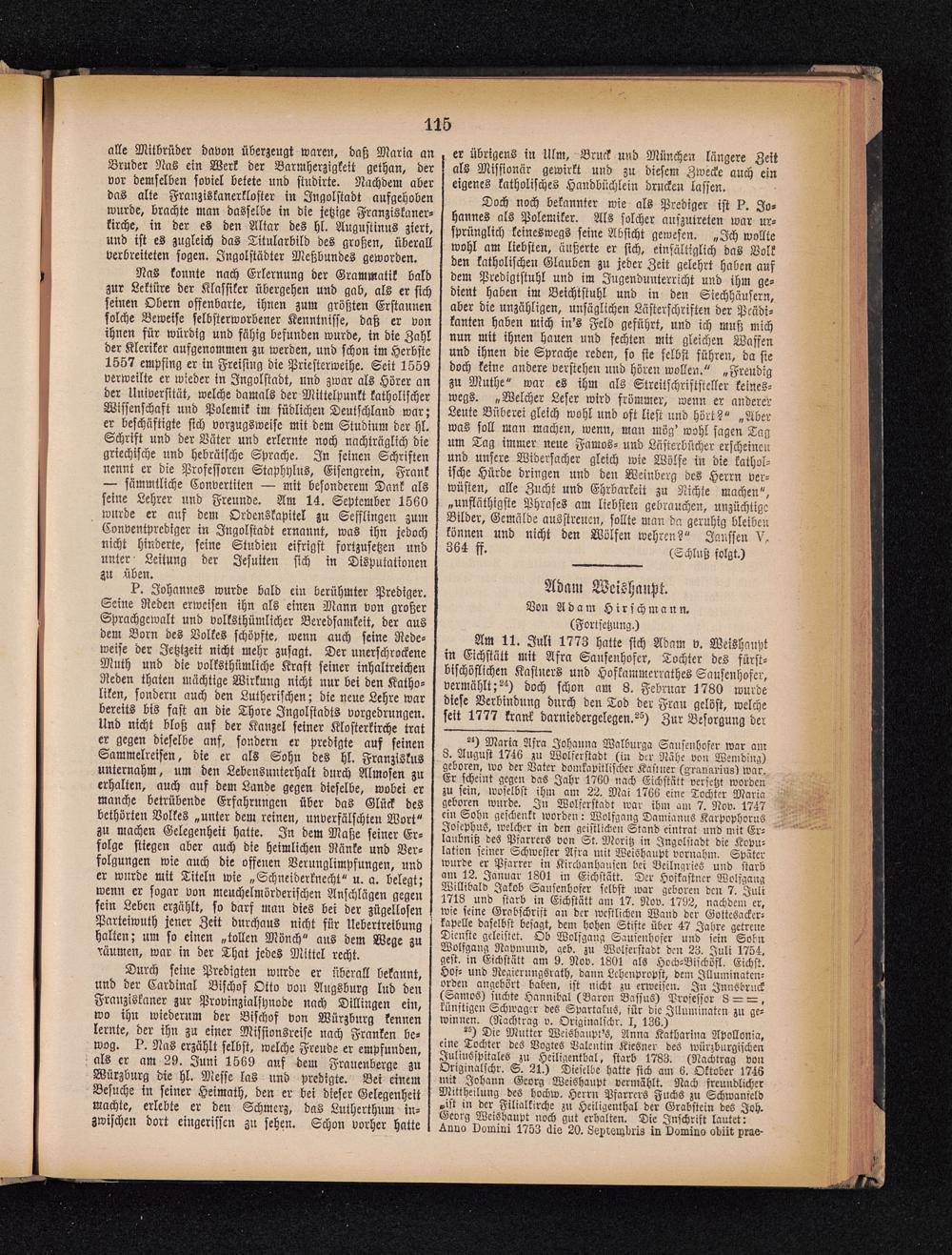 k. Johannes wurde bald ein berühmter Prediger.Seine Reden erweisen ihn als einen Mann von großerSprachgewalt und volksthümlicher Beredsamkeit, der ausdem Born des Volkes schöpfte, wenn auch seine Rede-weise der Jetztzeit nicht mehr zusagt. Der unerschrockeneMuth und die volkstümliche Kraft seiner inhaltreichenReden thaten mächtige Wirkung nicht nur bei den Katho-liken, sondern auch den Lutherischen; die neue Lehre warbereits bis fast an die Thore Jngolstadts vorgedrungen.Und nicht bloß auf der Kanzel seiner Klosterkirche trater gegen dieselbe auf, sondern er predigte auf seinenSammelreisen, die er als Sohn des hl. Franzisknsunternahm, um den Lebensunterhalt durch Almosen zuerhalten, auch auf dem Lande gegen dieselbe, wobei ermanche betrübende Erfahrungen über das Glück desbethörten Volkes „unter dem reinen, unverfälschten Wort"zu machen Gelegenheit hatte. In dem Maße seiner Er-folge stiegen aber auch die heimlichen Ränke und Ver-folgungen wie auch die offenen Verunglimpfungen, under wurde mit Titeln wie „Schneiderknecht" u. a. belegt;wenn er sogar von Meuchelmörderischen Anschlägen gegensein Leben erzählt, so darf man dies bei der zügellosenParteiwuth jener Zeit durchaus nicht für Uebertreibunghalten; um so einen „tollen Mönch" aus dem Wege zuräumen, war in der That jedes Mittel recht.