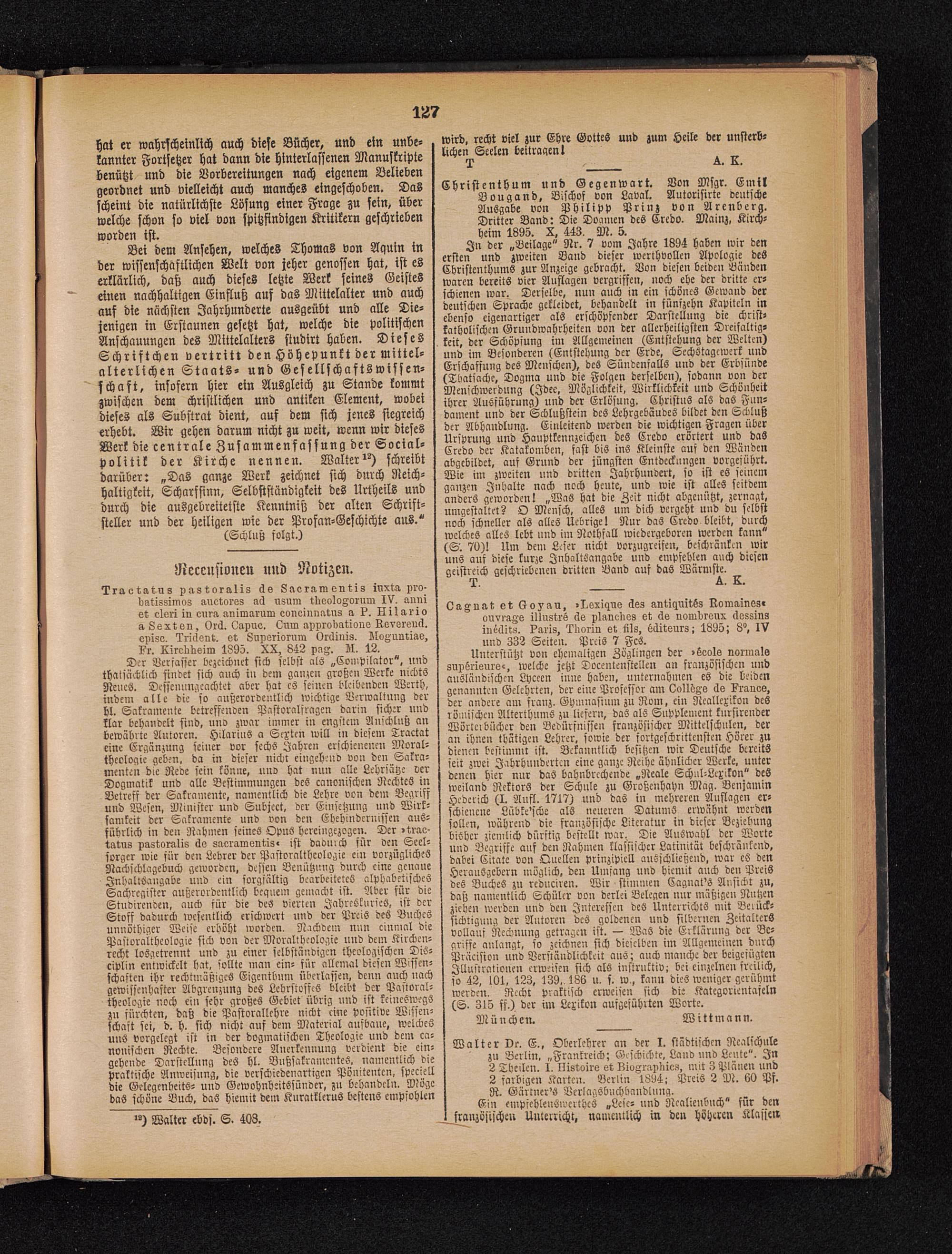 Christenthum und Gegenwart. Von Msgr. EmilBougand, Bischof von Laval. Autorisirte deutsche Ausgabe von Philipp Prinz von Arenberg.Dritter Band: Die Dogmen des Credo. Mainz , Kirch-heim 1895. X, 443. M. 5.