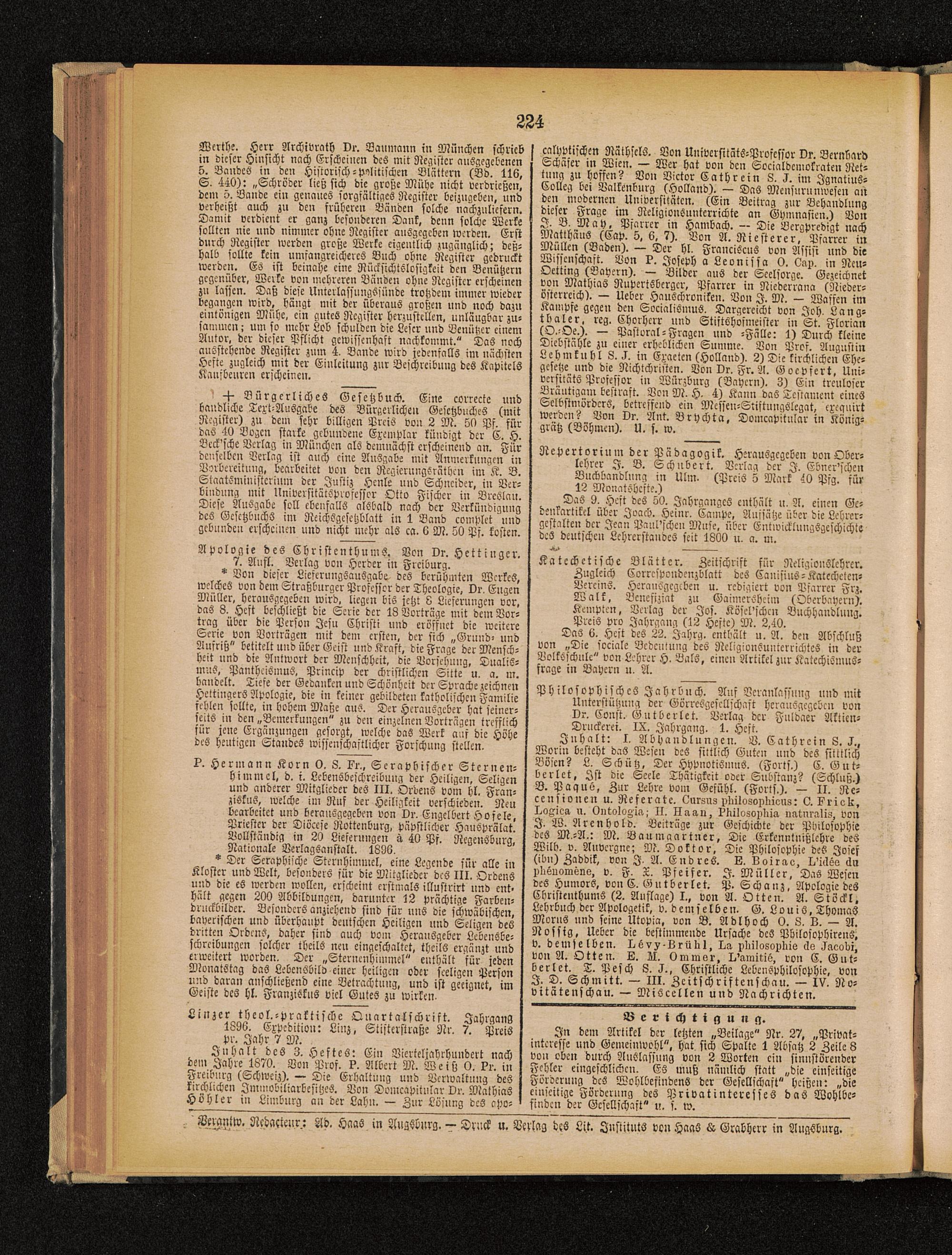 Das 6. Heft des 22. Jahrg. enthält u. A. den Abschlußvon „Die sociale Bedeutung des Religionsunterrichtes in derVolksschule" von Lehrer H. Aals, einen Artikel zur Katechismus-frage in Bayern u. A.