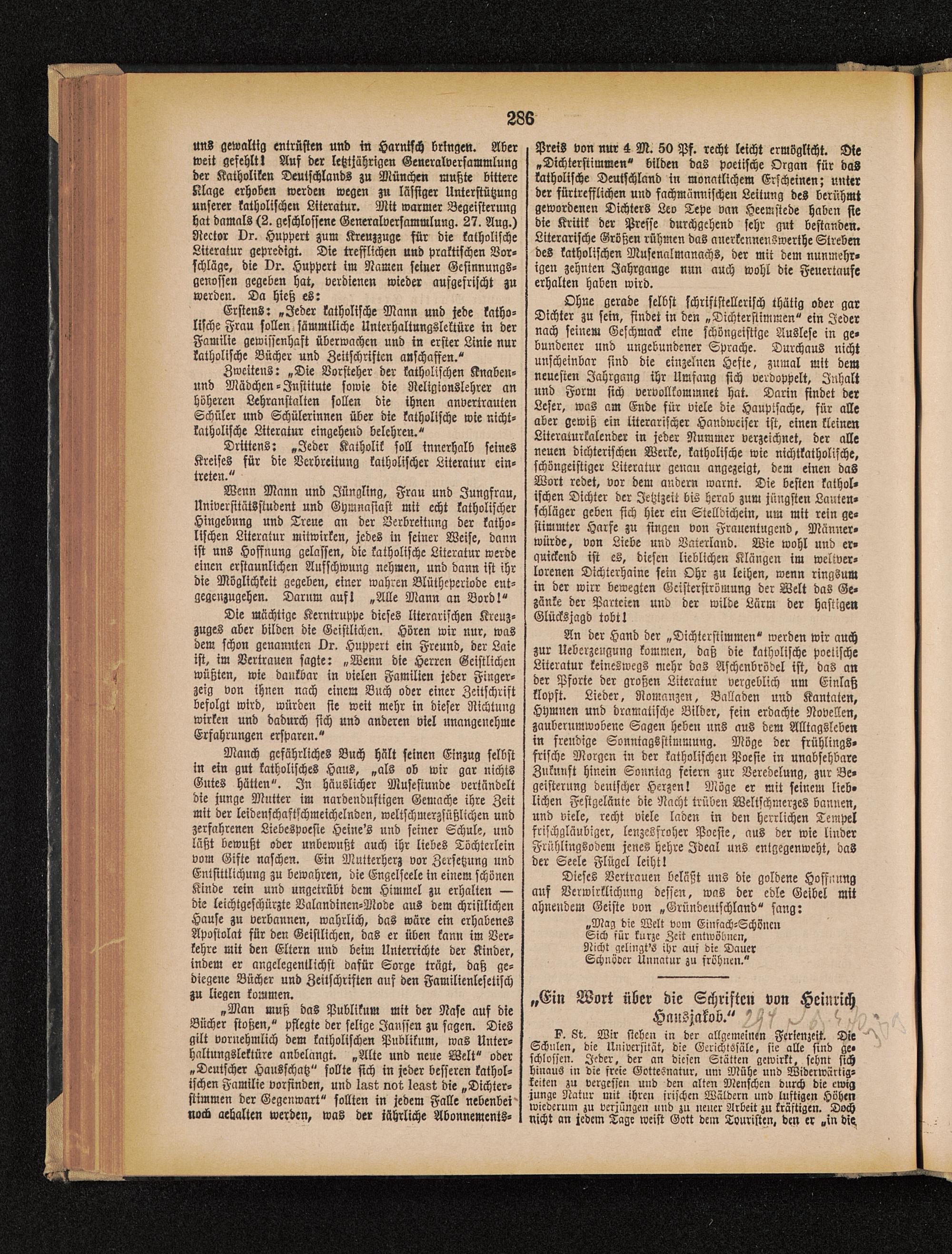 uns gewaltig entrüsten und in Harnisch bringen. Aberweit gefehlt! Auf der letztjährigen Generalversammlungder Katholiken Deutschlands zu München mußte bittereKlage erhoben werden wegen zu lässiger Unterstützungunserer katholischen Literatur. Mit warmer Begeisterunghat damals (2. geschlossene Generalversammlung. 27. Aug.)Nector vr. Huppert zum Kreuzzuge für die katholischeLiteratur gepredigt. Die trefflichen und praktischen Vor-schläge, die Dr. Huppert im Namen seiner Gesinnungs-genossen gegeben hat, verdienen wieder aufgefrischt zuwerden. Da hieß es: