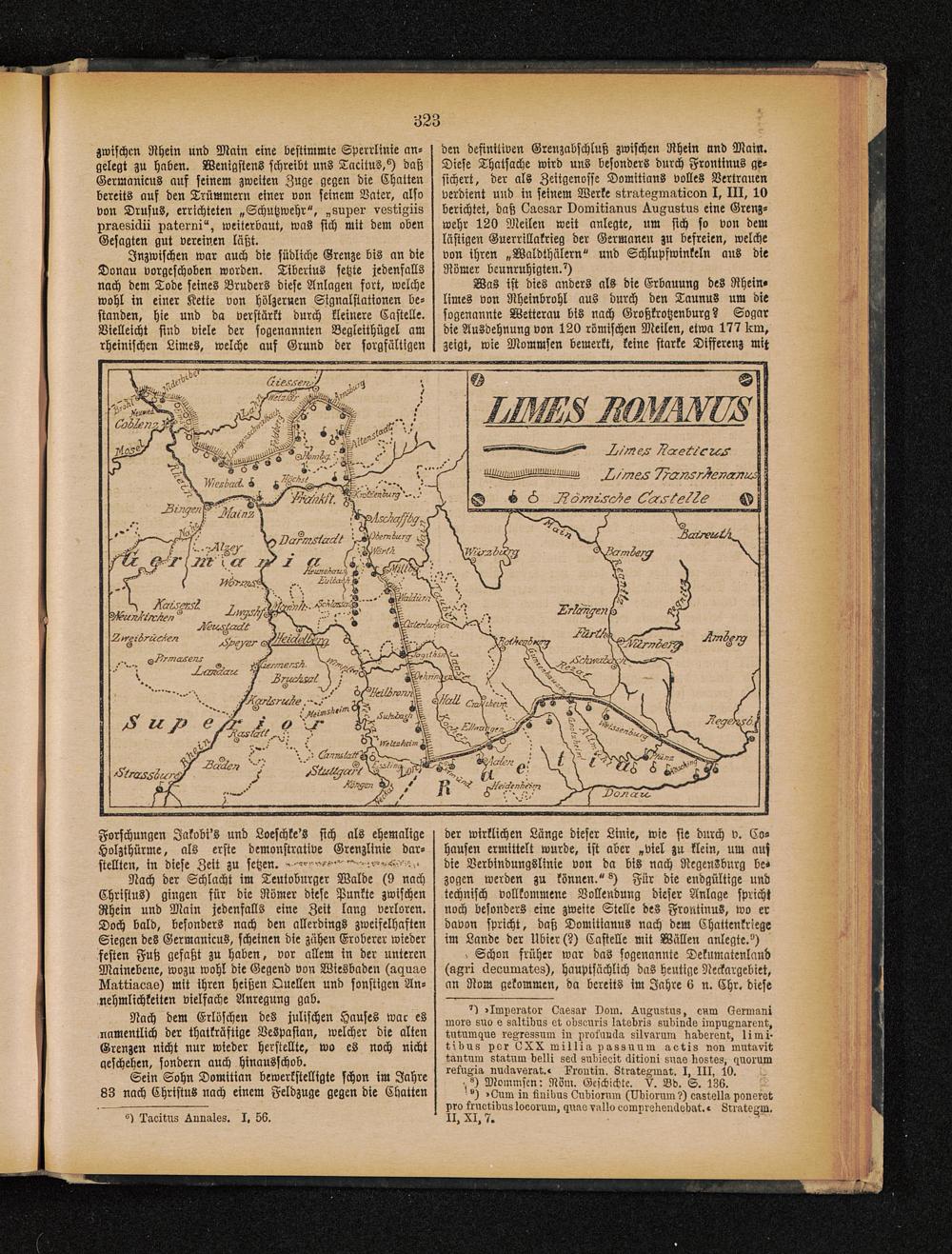 den definitiven Grenzabschluß zwischen Rhein and Main .Diese Thatsache wird uns besonders durch Frontinus ge-sichert, der als Zeitgenosse Domitians volles Vertrauenverdient und in seinem Werke 8trat6Ziriaticc>n I, III, 10berichtet, daß Oussur vowrtianus ^uZustus eine Grenz-wehr 120 Meilen weit anlegte, um sich so von demlästigen Guerrillakrieg der Germanen zu befreien, welchevon ihren „Waldthälern" und Schlupfwinkeln aus dieRömer beunruhigten?)