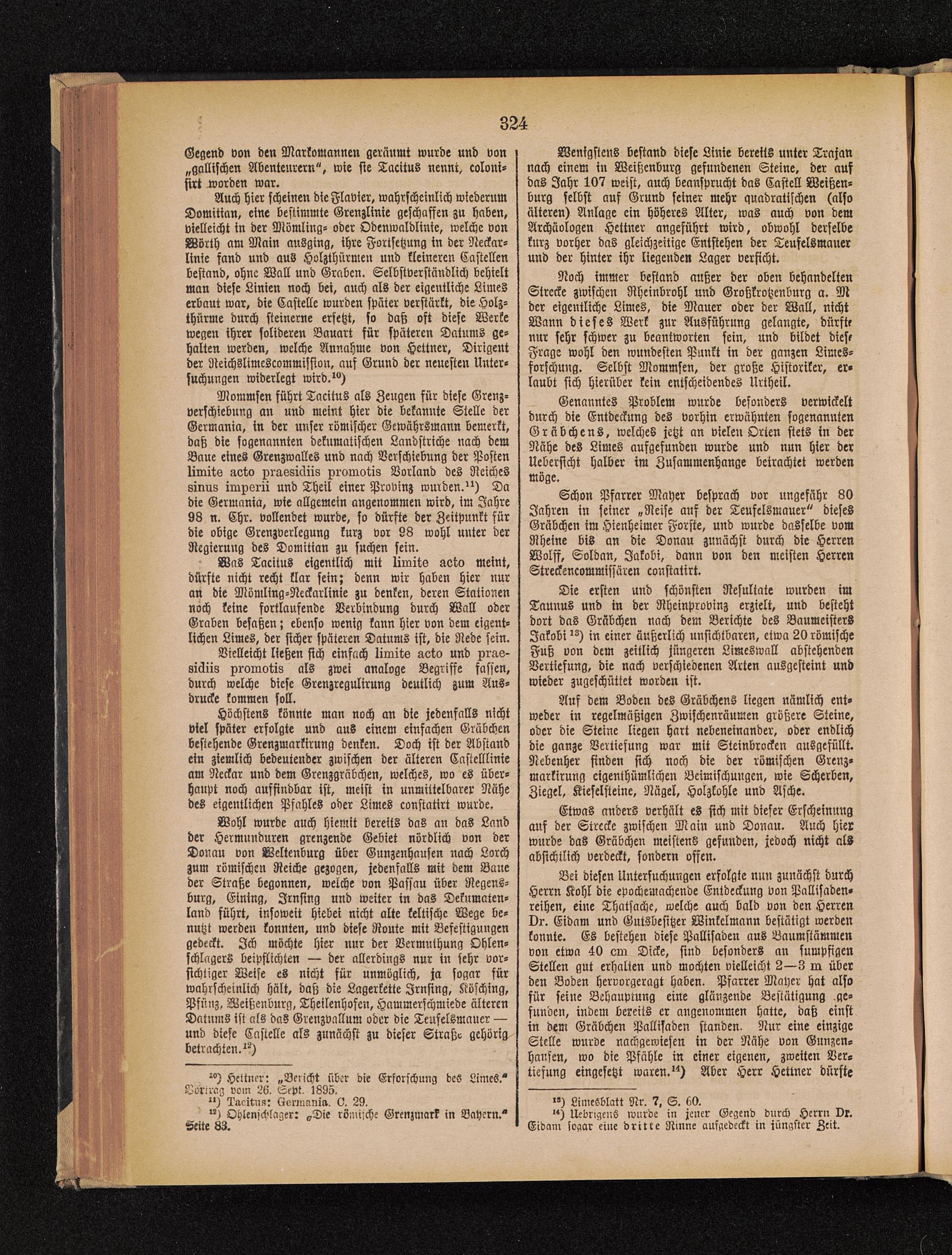 Was Tacitus eigentlich mit liraits aoto meint,dürfte nicht recht klar sein; denn wir haben hier nuran die Mömling-Neckarlinie zu denken, deren Stationennoch keine fortlaufende Verbindung durch Wall oderGraben besaßen; ebenso wenig kann hier von dem eigent-lichen Limes, der sicher späteren Datums ist, die Rede sein.