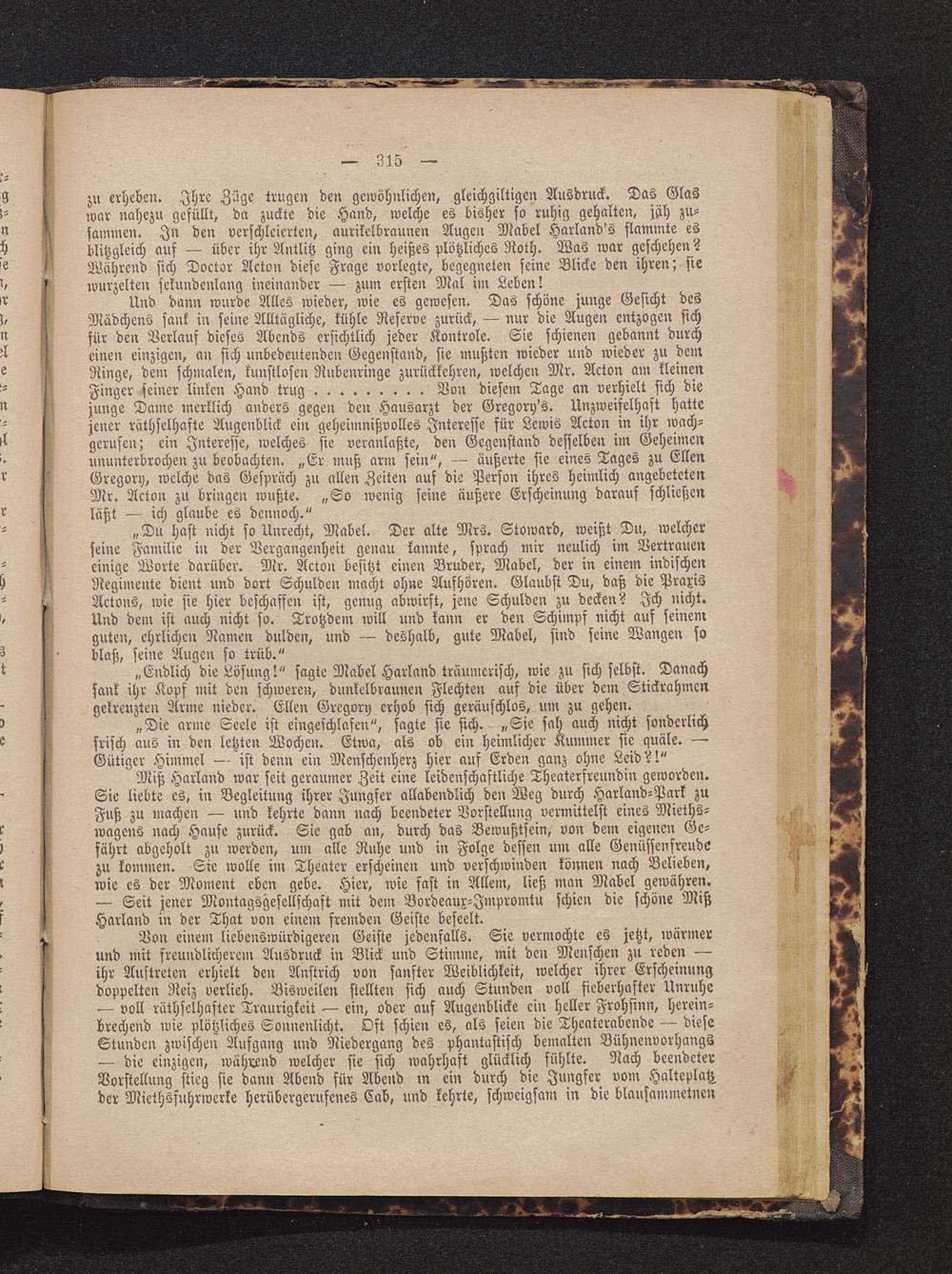 junge Dame merklich anders gegen den Hausarzt der Gregory's. Unzweifelhaft hattejener rüthselhafte Augenblick ein geheimnißvolles Interesse für Lewis Acton in ihr wach-gerufen; ein Interesse, welches sie veranlaßte, den Gegenstand desselben im Geheimenununterbrochen zu beobachten. „Er muß arm sein", — äußerte sie eines Tages zu EllenGregory, welche das Gespräch zu allen Zeiten auf die Person ihres heimlich angebetetenMr. Acton zu bringen wußte. „So wenig seine äußere Erscheinung darauf schließenläßt — ich glaube es dennoch."