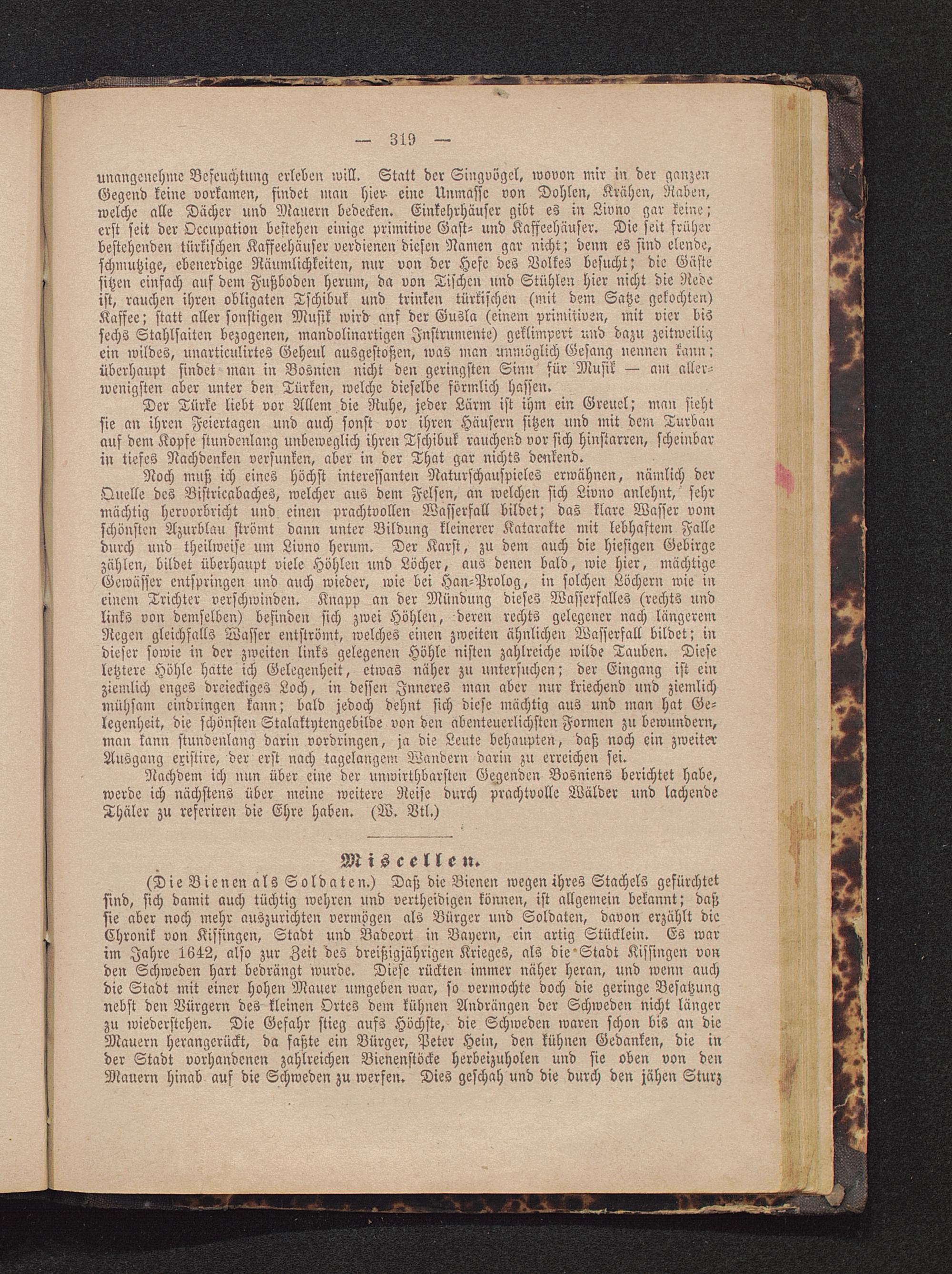 Nachdem ich nun über eine der unwirthbarsten Gegenden Bosniens berichtet habe,werde ich nächstens über meine weitere Reise durch prachtvolle Wälder und lachendeThäler zu referiren die Ehre haben. (W. Vtl.)
