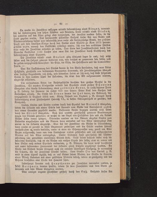 Die Investitur mittels eines Stabes ging übrigens sogar so weit, daß nichtselten auch die Holzart genauer bestimmt war, von welcher er genommen sein sollte, undda galten vorzugsweise brauchbar: die Eiche, die Esche, die Haselstaude und die Tamarisken-staude. —