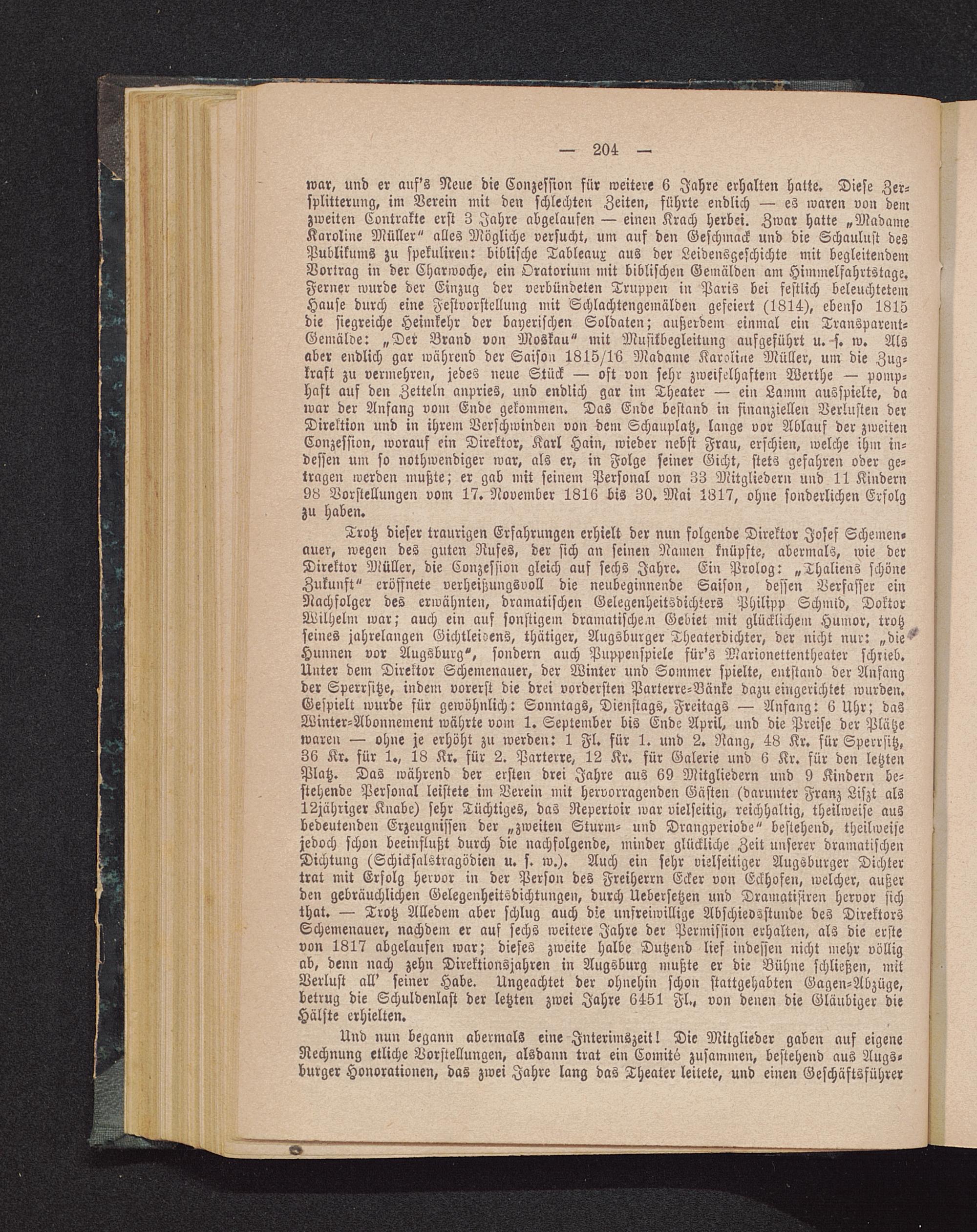 Und nun begann abermals eine Jnterimszeit l Die Mitglieder gaben auf eigeneRechnung etliche Vorstellungen, alsdann trat ein Comitä zusammen, bestehend aus Augs-burger Honorationen, das zwei Jahre lang das Theater leitete, und einen Geschäftsführer