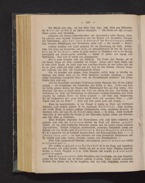 Gar so gerne heirathen viele aus Geldsucht. Die Kinder aber kommen gar oftmit blinden Augen zur Welt, namentlich bei Reichen. Darum gibt's heute blinde, auchso viele blinde Augen, die nichts mehr vom poetischen Glauben an eine bessere Zeit undan ein Ideal wissen und sehen wollen und nur noch für edle Metalle, Gewicht, Länge-und Hohlmaße eine Seh- und Empsindungskraft besitzen.