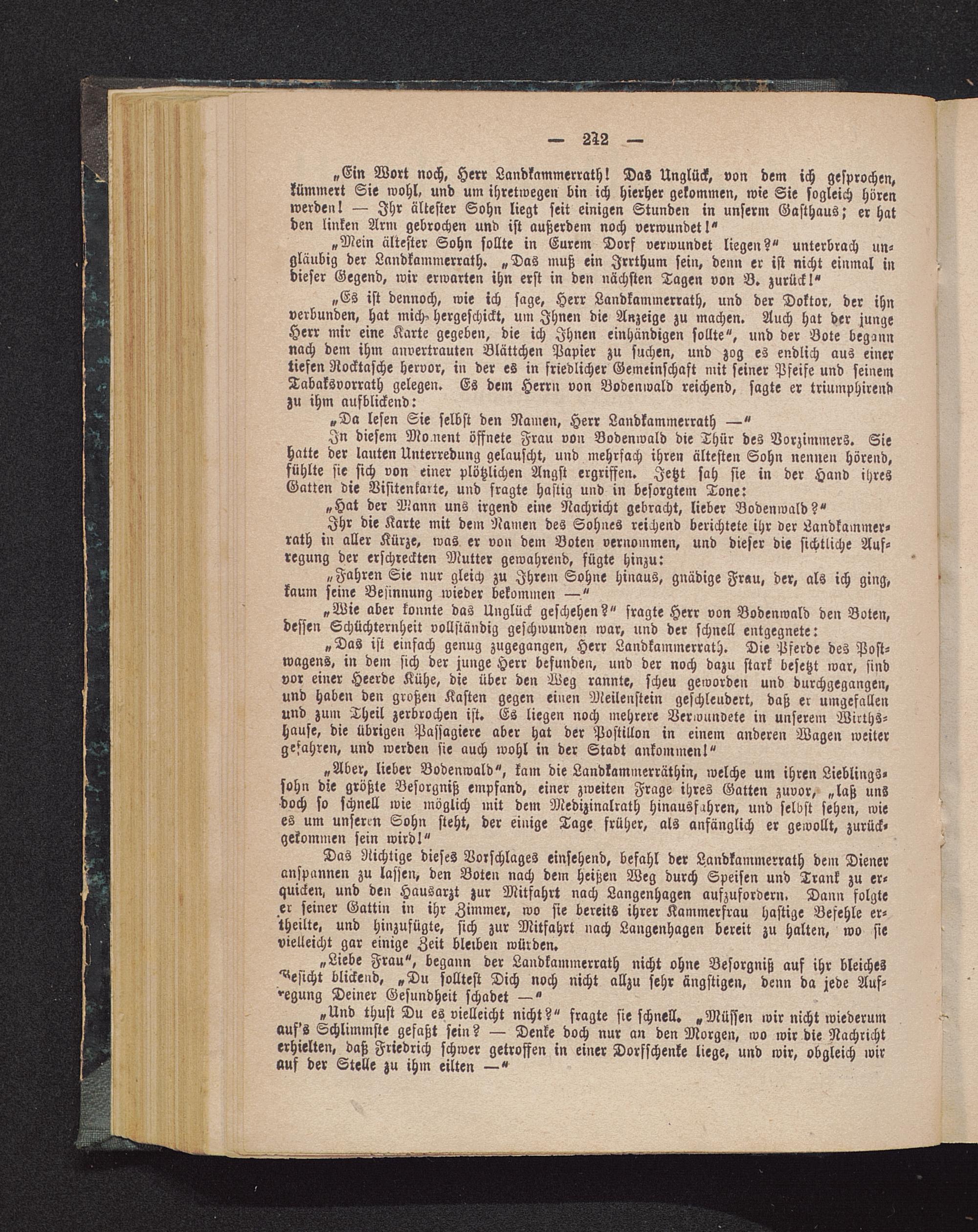 „Ein Wort noch, Herr Landkammerrath! Das Unglück, von dem ich gesprochen,kümmert Sie wohl, und um ihretwegen bin ich hierher gekommen, wie Sie sogleich hörenwerden I — Ihr ältester Sohn liegt seit einigen Stunden in unserm Gasthaus; er hatden linken Arm gebrochen und ist außerdem noch verwundet!"