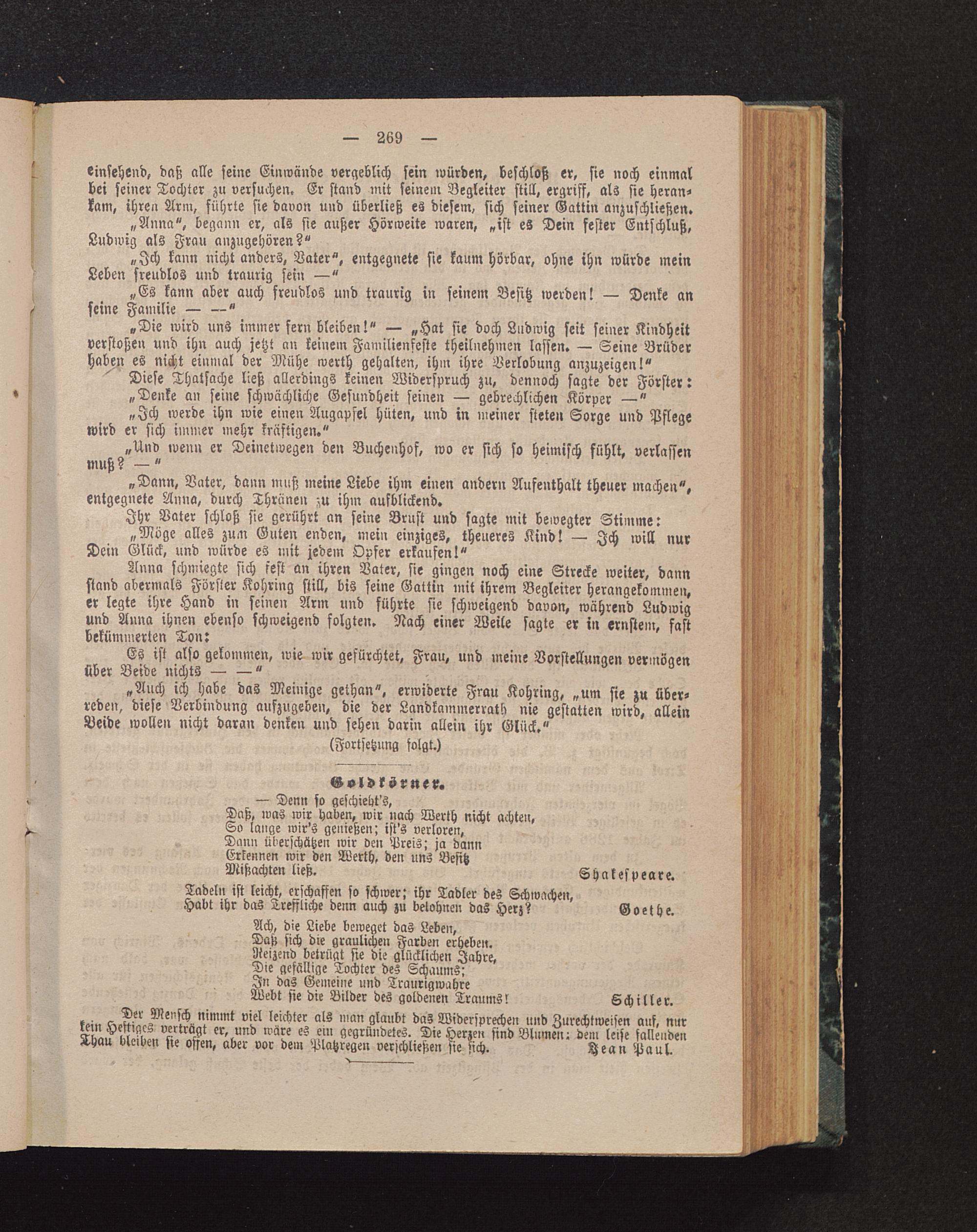 „Dann, Vater, dann muß meine Liebe ihm einen andern Aufenthalt theuer machen",entgegnete Anna, durch Thränen zu ihm aufblickend.