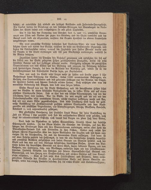 Ein paar preußische Geschütze beschoßen das Landauer-Thor, ein paar bayerischefolgten ihnen und thaten das Gleiche, nachdem sie dicht am Grabenrande abgeprotzt, undlegten die Brückenpfeiler nieder, worauf die Zugbrücke zum Fallen gebracht wurde unddie Bayern in die Stadt eindrangen und bis zum Marktplatze vordrangen, woselbst siedie Mairie besetzten.