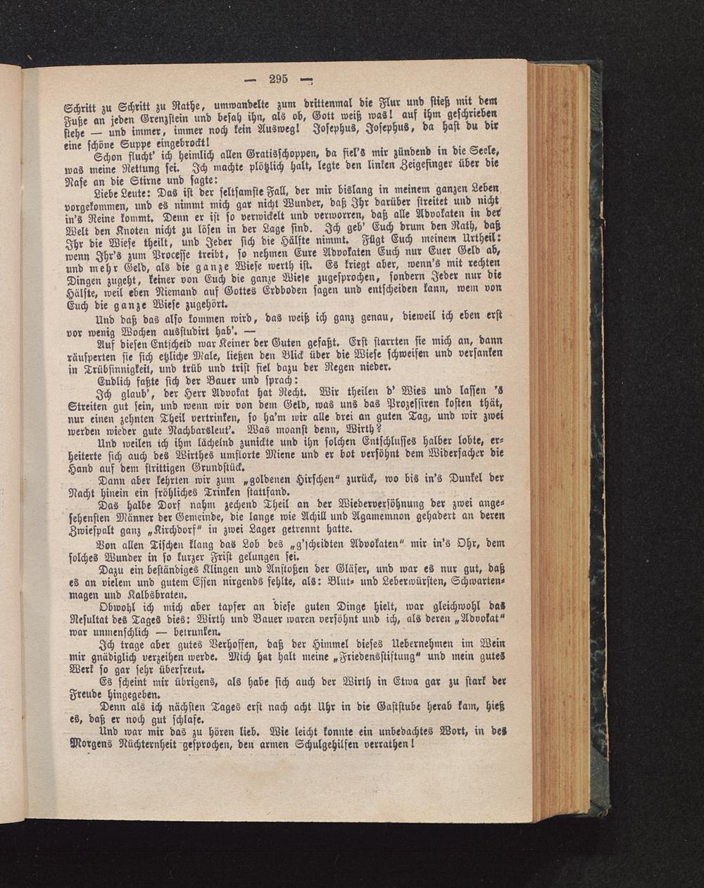 Ich glaub', der Herr Advokat hat Recht. Wir theilen d' Wies und lassen 'SStreiten gut sein, und wenn wir von dein Geld, was uns das Prozessiren kosten that,nur einen zehnten Theil vertrinke», so ha'm wir alle drei an guten Tag, und wir zweiwerden wieder gute Nachbarsleut'. Was moanst denn, Wirth?