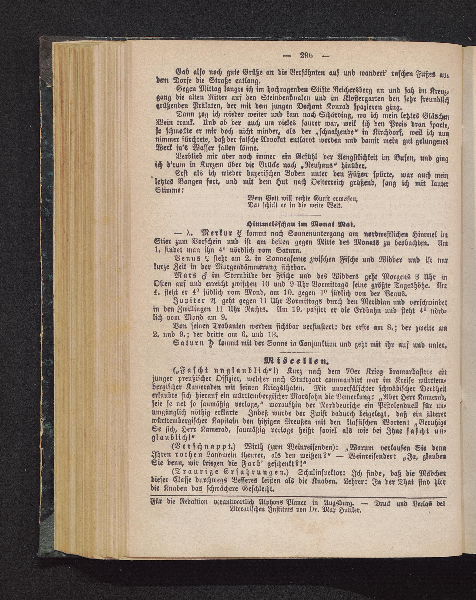 Für die Redaktion verantwortlich Alphons Planer in Augsburg . — Druck und Verlag desLiterarischen Instituts von Dr. Max Huttler.